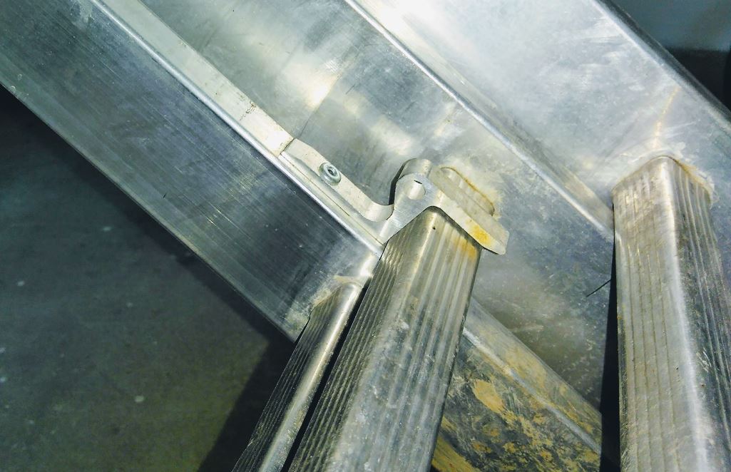 Ještě pozor na to obracení žebříku - mám takový dojem, že pokud se žebřík otočí takto, má pak nižší nosnost. Je otázkou, jestli je vůbec povolené po něm v takovém stavu běhat. Horní díly žebříku totiž sedí v hliníkovém úchytu, který drží na jednom nýtu a výstupku. V normálním stavu jsou oba prvky namáhané ve střihu. Po otočení žebříku už se ale navíc přidává i tah a to jak na nýt, tak i na celý ten hliníkový úchyt. Takže pokud někdo rád papá (jako já), pak doporučuji obezřetnost.