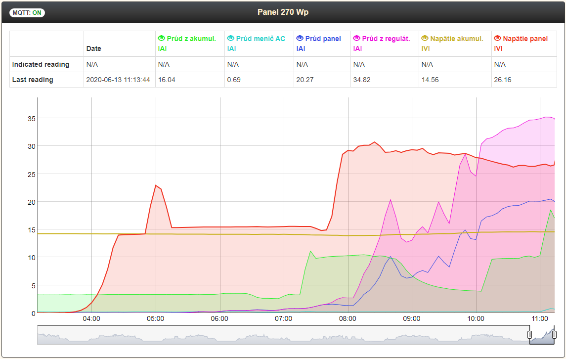 Prevádzkové napätie pre akumulátor mám nastavené od 13,6V do 16,15V, ten spodok možno ešte zvýšim na 13,8V.