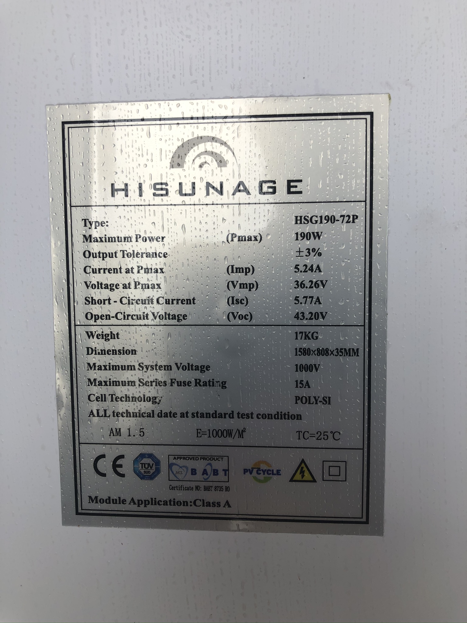 Zdravím, takže dnešní nabídka je pro všechny kdo nevyžadují úplně nové zboží. Mám na prodej 4 roky staré, použité panely v nestandardním rozměru 158x81 cm, výška rámu 35 mm od značky HISUNAGE. Nominální hodnota výkonu 190 Wp. Mohu garantovat maximální pokles o 10% výkonu. Panely jsou bez záruky pouze 30 dní na vyzkoušení. Cena se odvíjí dle odebraného množství. Do 3 ks 1200,- Kč; 4-15 ks 1100,-; 16-30 ks 1000,-; nad 30 ks individuální dohoda. Ceny jsou tzv. konečné a není možné uplatnít odpočet DPH. Objednávát můžete zde na eshopu, u mě na eshopu nebo telefonicky.