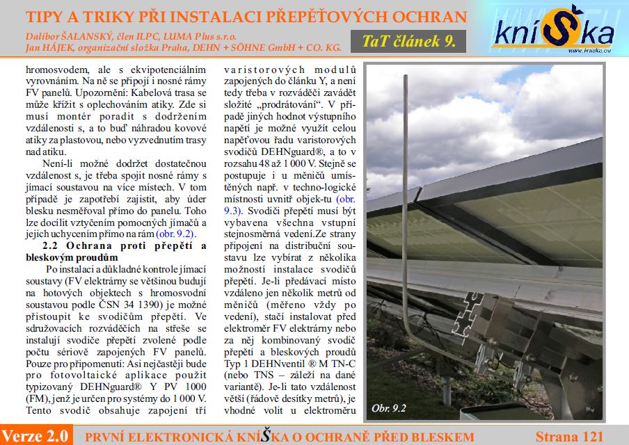 Bohužel, při instalaci hromosvodu a extra uzemňování všech konstrukcí na střeše s FVE se toho dá hrozně moc posrat. Často se ani není možné dodržet Vzdálenost S. Zejména, pokud chceme mít střechu plnou panelů nebo je střešní krytina plechová. Naštěstí existuje ještě druhá možnost řešení, cituji: