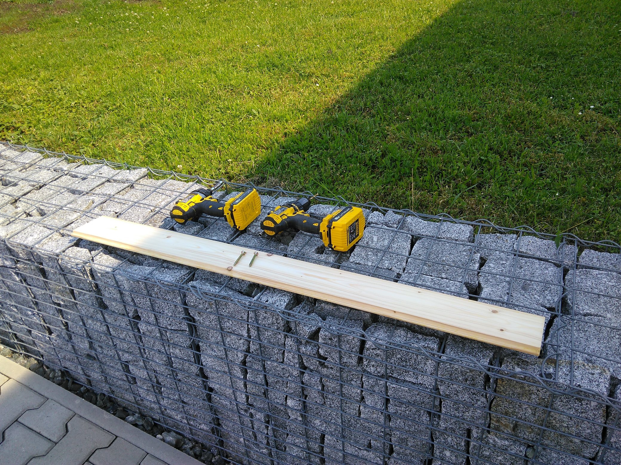 Potřeba je žebřík, prkno, dva větší vruty:Prkno namontováno:Žebřík připravený k akci:Odpočinkové bazmeky jsou zde: Youda