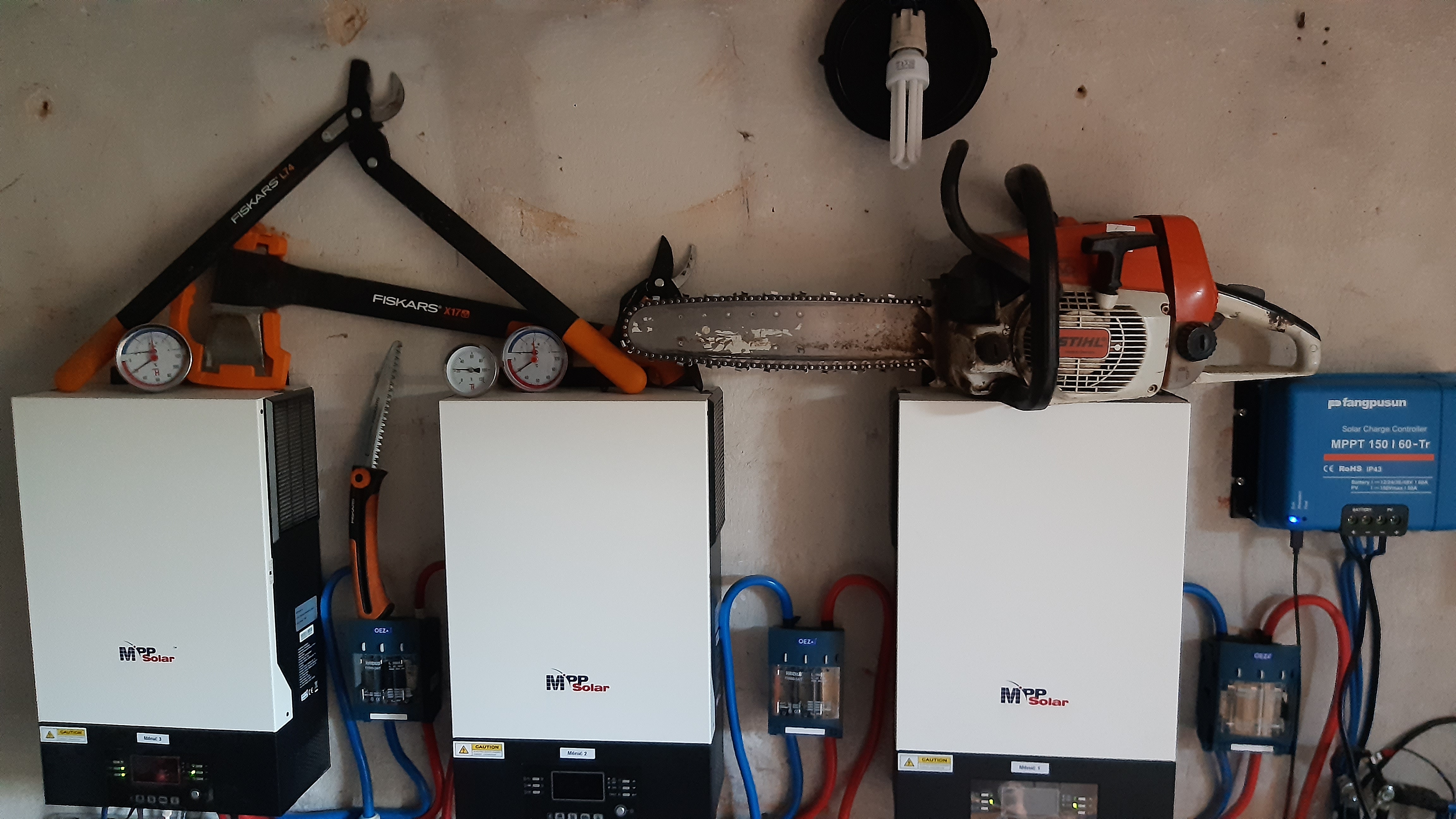 3,96kWp monokrystalů + 2x regl PCM60X + 24kWh LiFePO4 + 6kW HF sínus měnič 48MWh+ , celé na 52V systému .