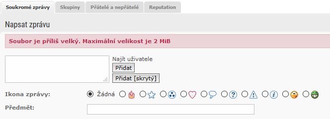 Max. počet příloh na 1 soukromou zprávu: původně 15, teď 25