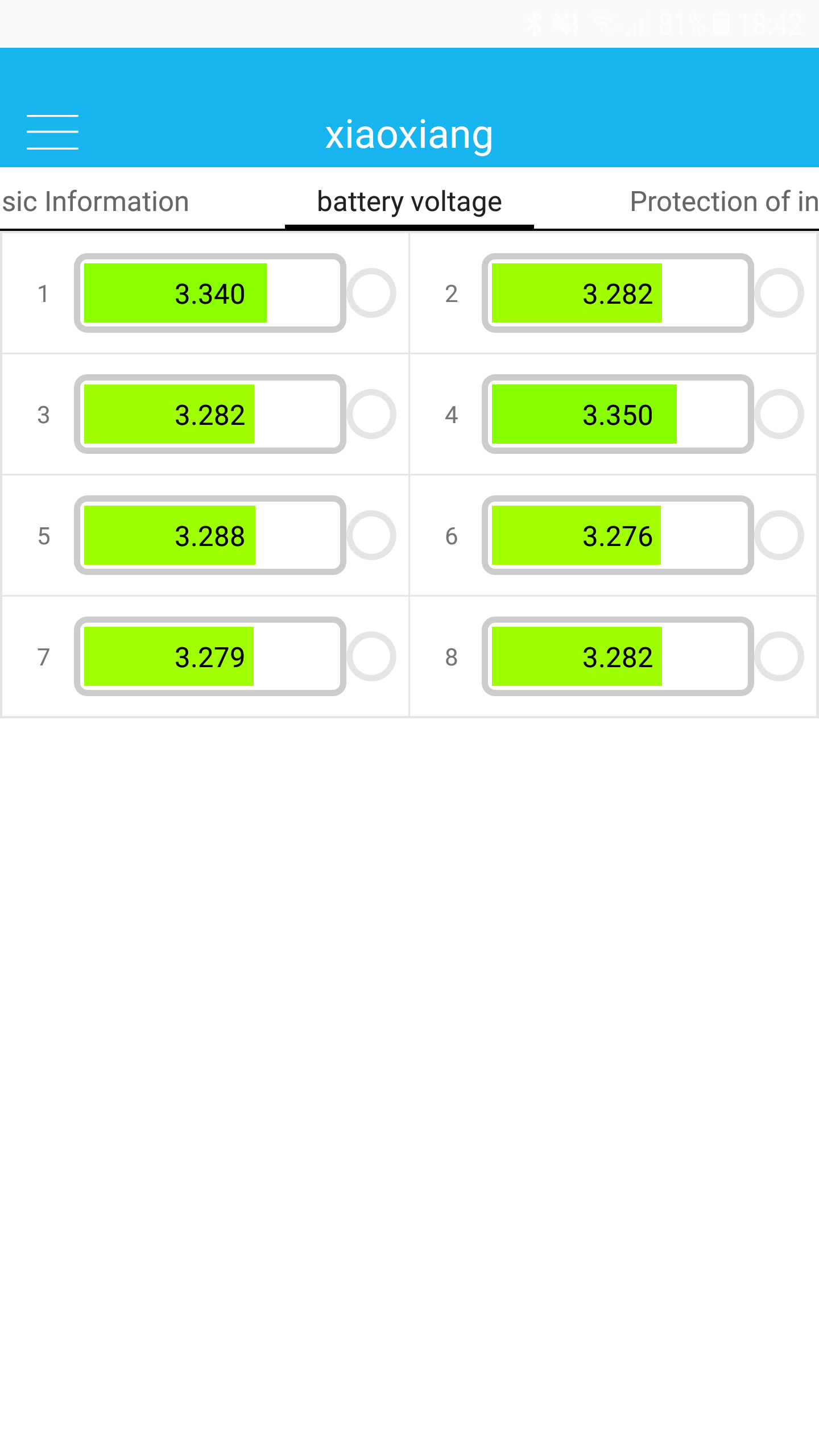 Takže výsledky jsou otřesný. na starým telefonu, android 7 a aplikace 2.1cosi - žlutej slon - sice někdy s problémamam, na několikátý, fungují BMS všechny, co mám, tj 4ks (pátá v šuplíku)