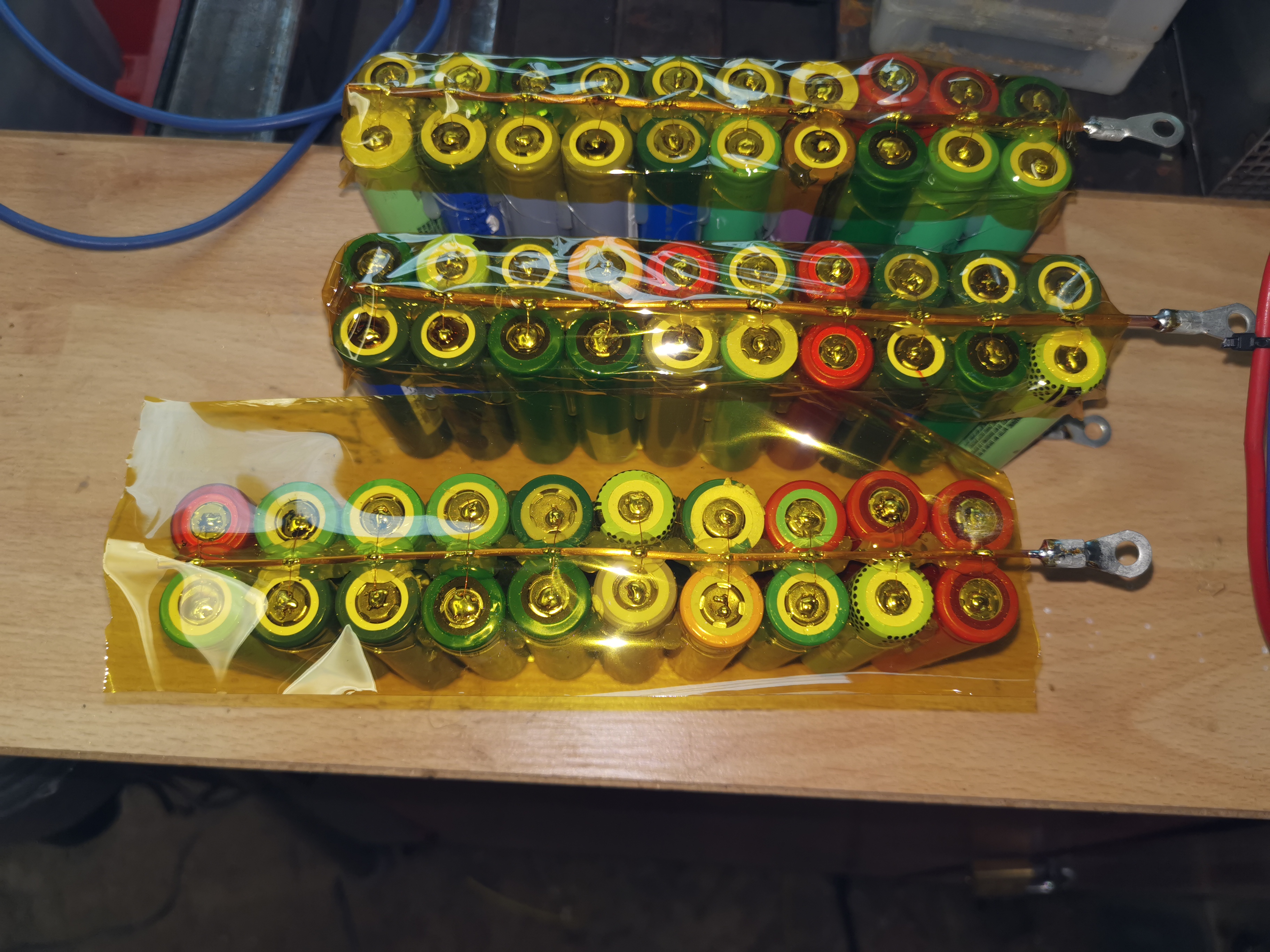 Vyřazení na test samovybíjení u použitých je daleko horší než nové lanzhd, to dělá třeba 5% u použitých! Sice mají kapacitu, ale uvnitř měkký zkrat třeba od 4.08V výše, to napětí je různé a je blízké tomu na jaké napětí se vybíjí samy, je to způsobeno změnami hustoty a rozměrů mezi vybíjením a nabíjením, protože Li se přesouvá z katody na anodu a jedna se zmenšuje když se druhá zvětšuje... Až když samovybíjení v mém případě překročí 8A, tak mu ostatní nabité přepálí pojistku a to už je docela pozdě, menší průměr pojistkového drátku než 0.2mm je nereálný.