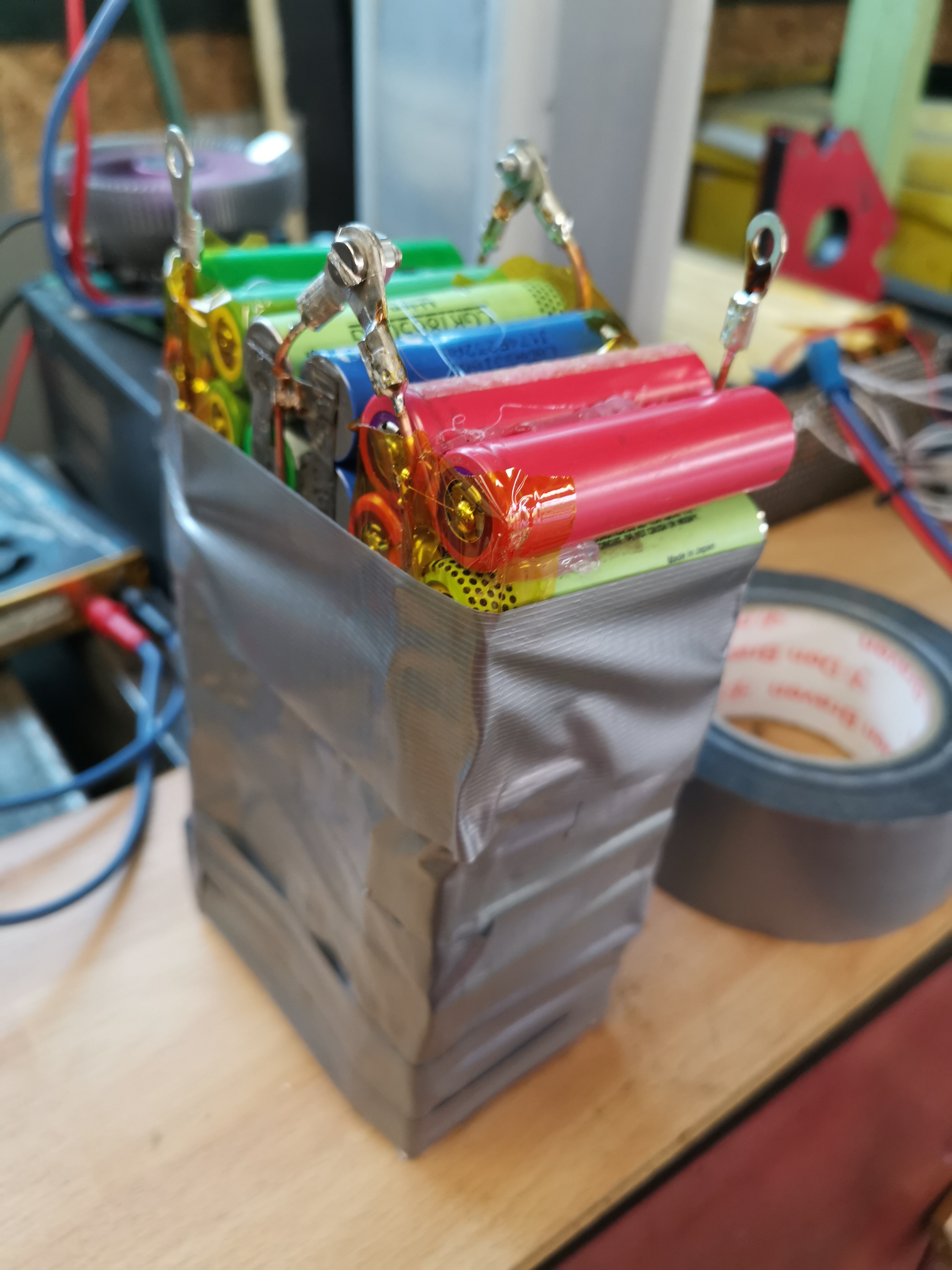 zostalo par 18650 tak vznikli home made battery pack.... stylom co dielna dala, aspon mam svetlo a hudbu nonstop v dielny zdarma