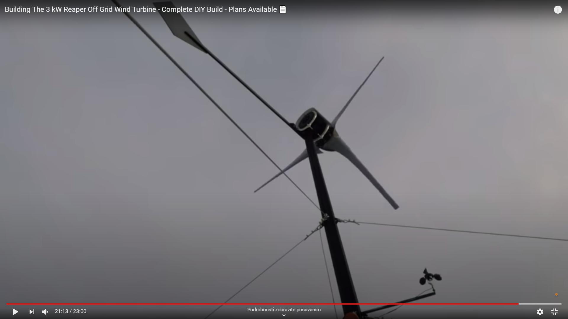 Kto vie rusky, môže si pozrieť ako funguje systém regulácie s natáčanými krídlami aj pri odpojení záťaže v silnom vetre: https://youtu.be/F4pZUSQATdk(je to videokanál Viktora, ktorý spáchal aj môj stredový hub, aj 1,8 m laminátové krídla).