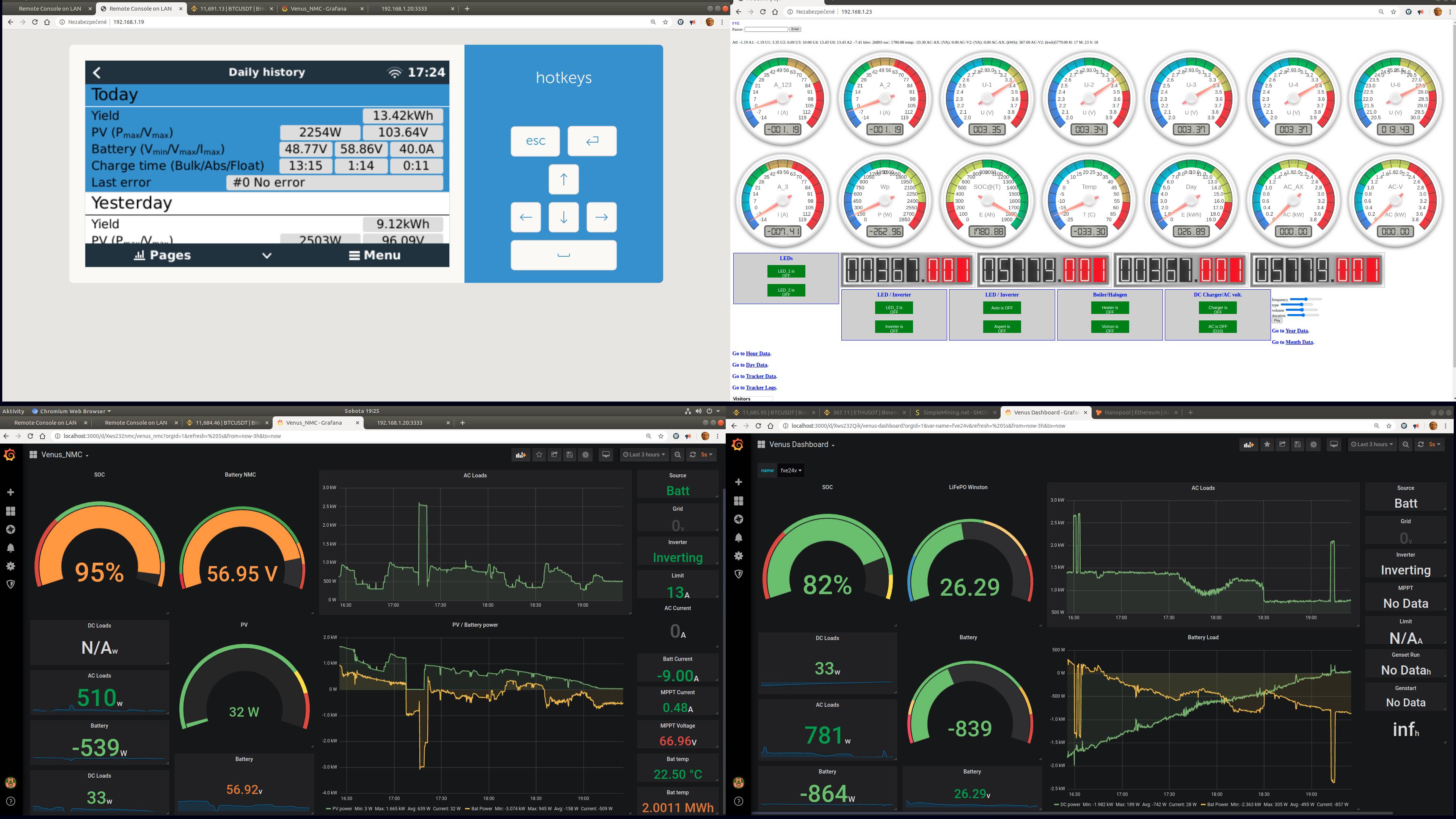 Téma popisuje zkušenosti s provozem ostrovní fotovoltaické elektrárny o výkonu 1020 Wp v Sobrancích. Autor sdílí detaily o komponentách systému, jako jsou panely, baterie, regulátory a měřicí zařízení založená na Arduinu. Součástí je i ochrana proti přepětí a statistiky výroby energie od roku 2014. Diskuze zahrnuje i otázky kompatibility měničů Victron a technické aspekty spolehlivosti komponent.