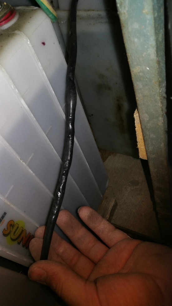 Dal som trocha zataž 2kW na luhovkach zhruba na hodinu a idem okolo spodnych baterok a štiplavy zapach. Pozeram čo sa deje a takto som našiel jeden z vedľajšich kabelov (6mm²). Od baterie 15cm studeny, takych 25cm uplne v ohni a 50cm znova studenych. Kabel evidentne bol dajako vnutorne poškodeny,ale take dačo som ešte nezažil.