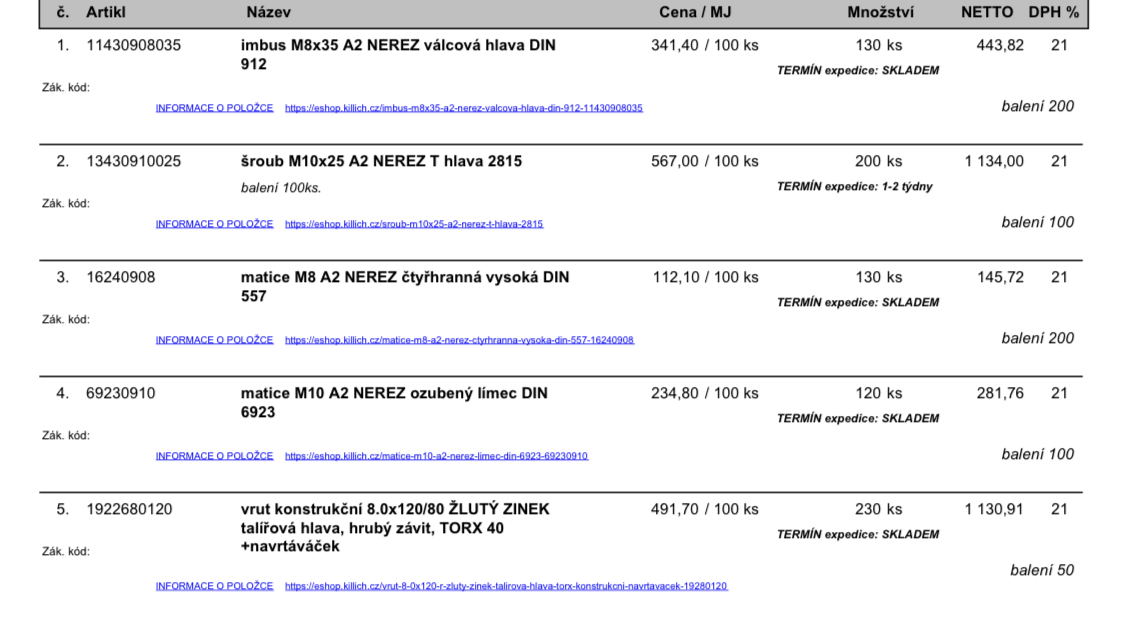 Dodavatel hliníku byla Alupa.cz a spojovací materiál Killich.cz