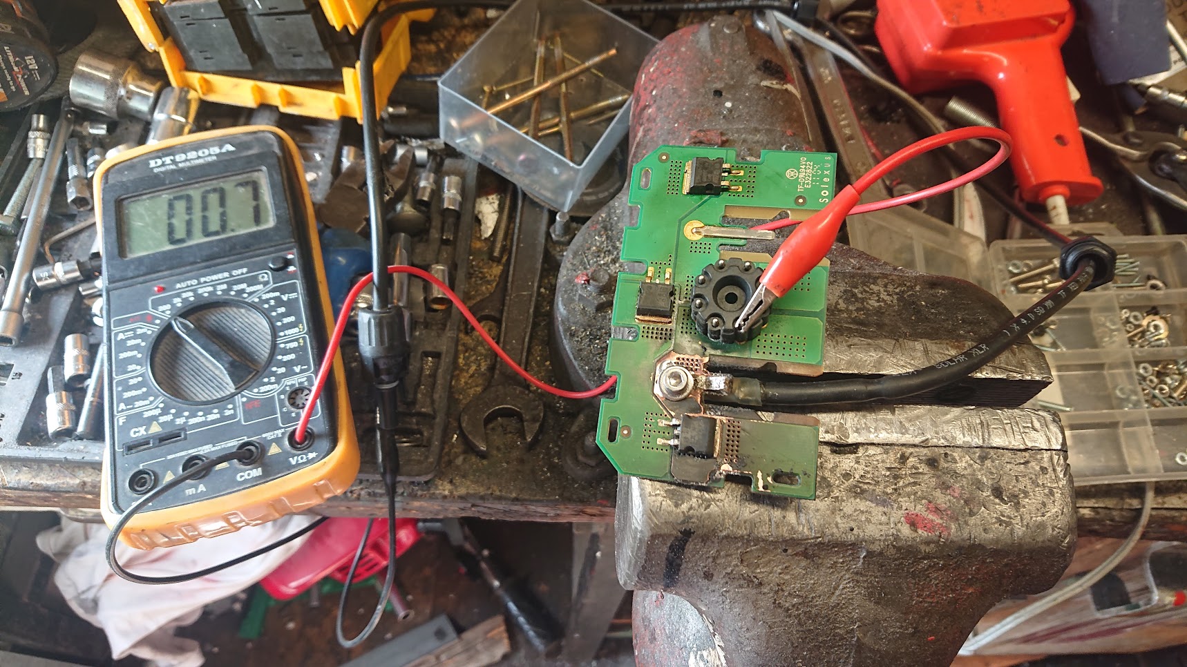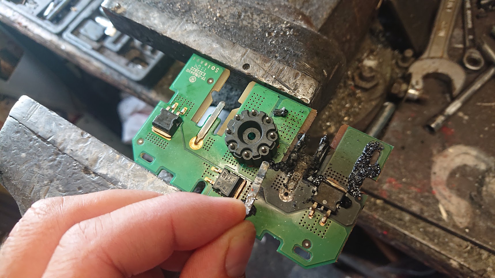 takhle to vypadalo po otevření krabičky, okem není nic vidět po oholení podrobnější pohled ukazuje, že tam docházelo k silnému zahřívání černě sežehlá DPS a přepálený cín na pinu a oprava, pájecí kapalinou zahřátí plamenem (hliníkový udělátor je stínění aby se nepálila DPS) a procínování cínem s olovem, očištění lihem a na finále zastříknutí bezbarvým lakem. ještě několik fotek původního panelu co vyhořel a pokus o opravu budiž to varování pro ty, co tohle nebezpečí s tímhle typem panelů bagatelizují
