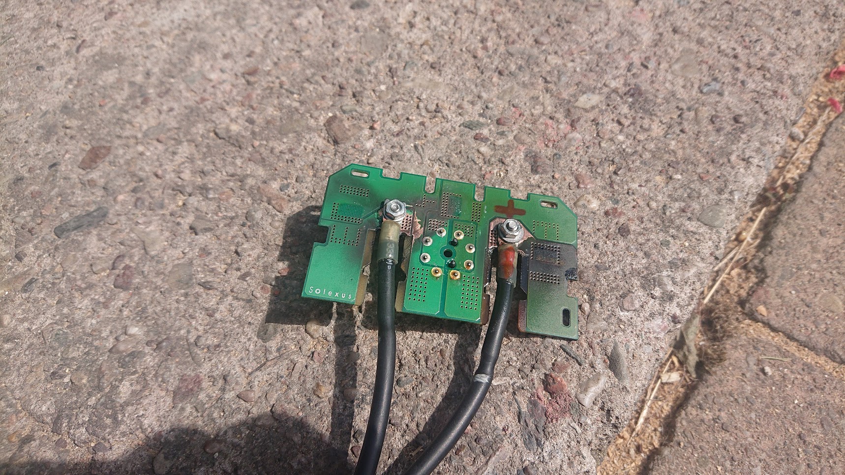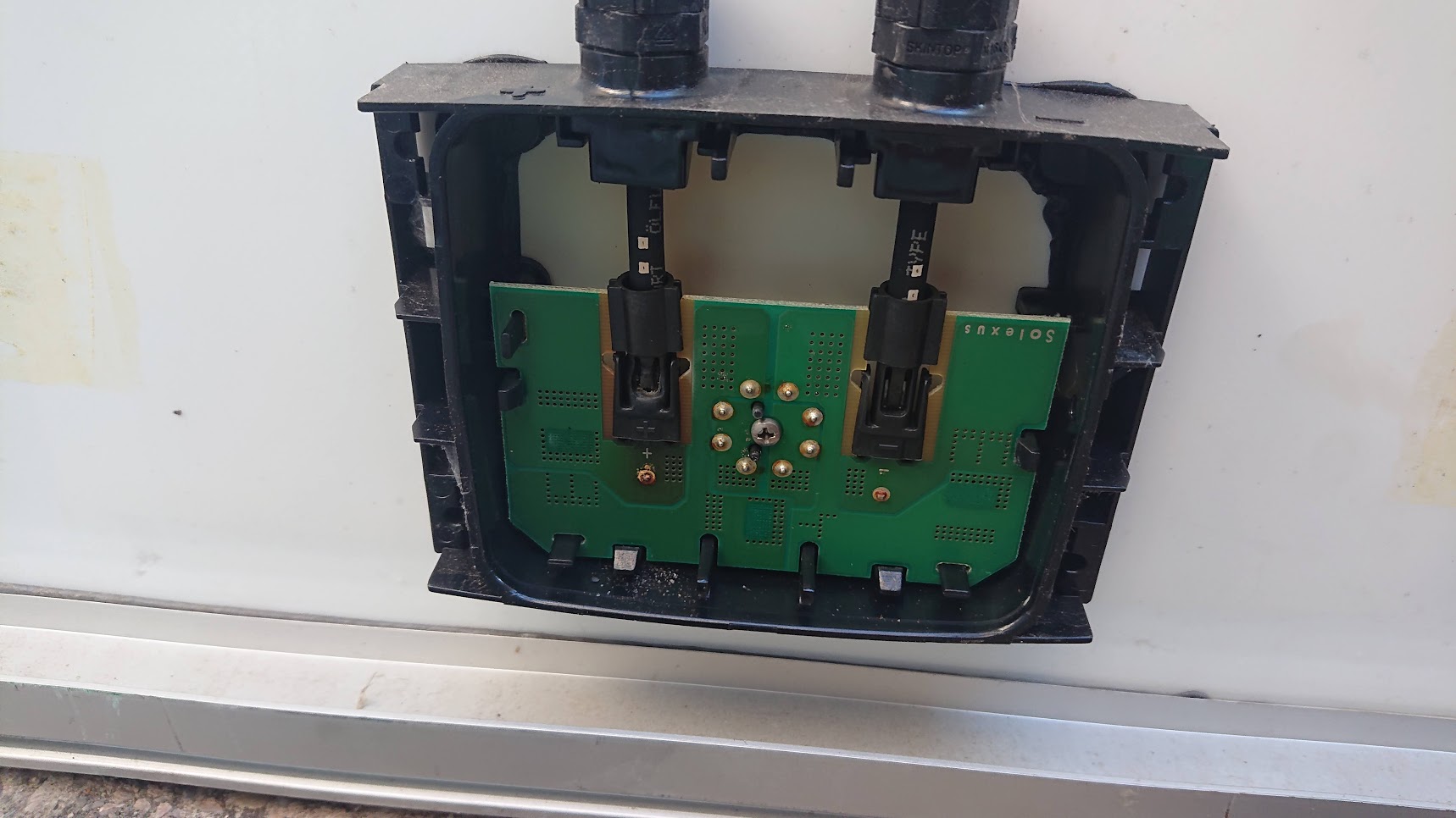 ty 4 panely jsem hned upravil propájením těch dementních konektorů a jaké bylo překvapení když jeden z těch panelů měl + pól se začínajícím přechoďákem. Po sundání krabičky to nebylo vidět až potom co se vytáhl konektor a zbavil toho blbého plastu. Jasně jiná barva a částečně ohořelá DPS s jistotou říká, že tenhle panel by v provozu shořel jako ten můj.