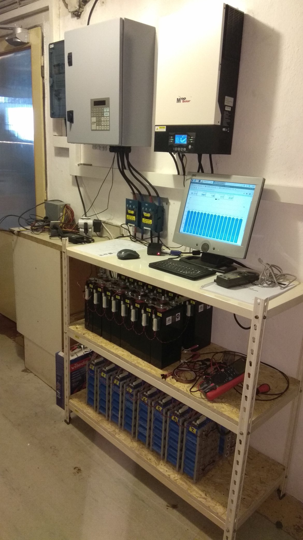 3,6kWp GWL Poly + 8,82kWp Canadian Mono, 3x PIP4048MS, 5x80P14S = 5600Cells 18650 (~900Ah/47kWh)