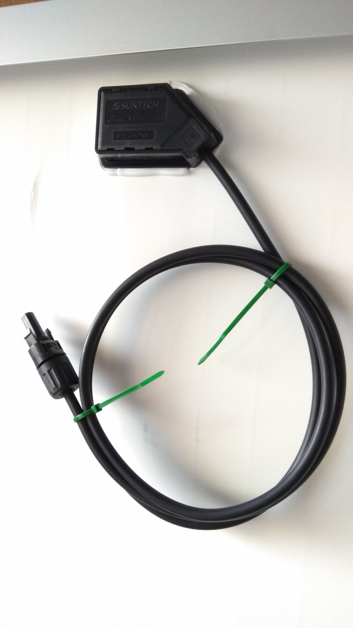 Použité panely mají trochu jinak provedené vývody. Krabičky jsou zalité bílou pružnou hmotou.