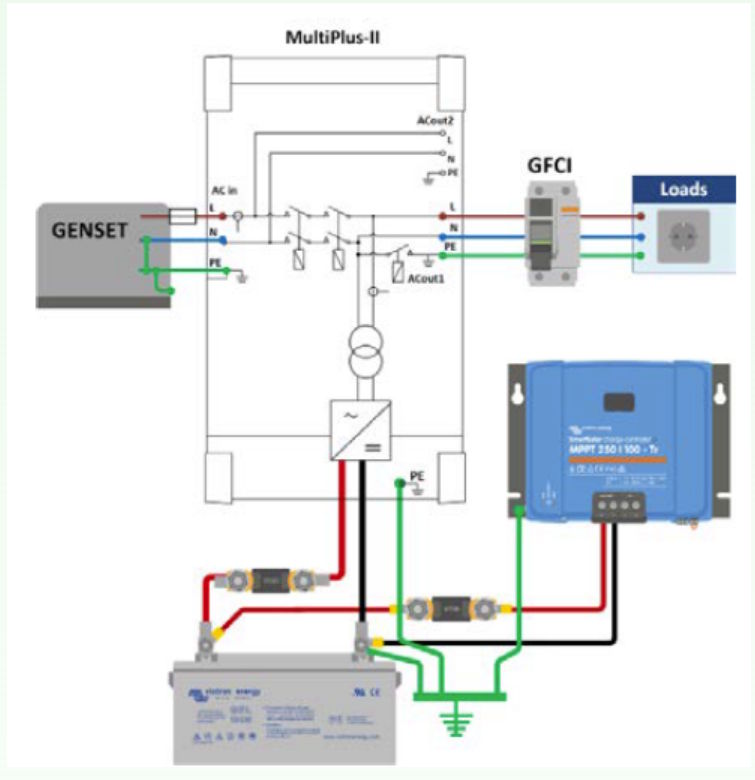 https://www.victronenergy.com/upload/do ... 30V-AC.pdf Je lepšie pripojiť uzemňovací vodič priamo na DC / - / pól battery packu,