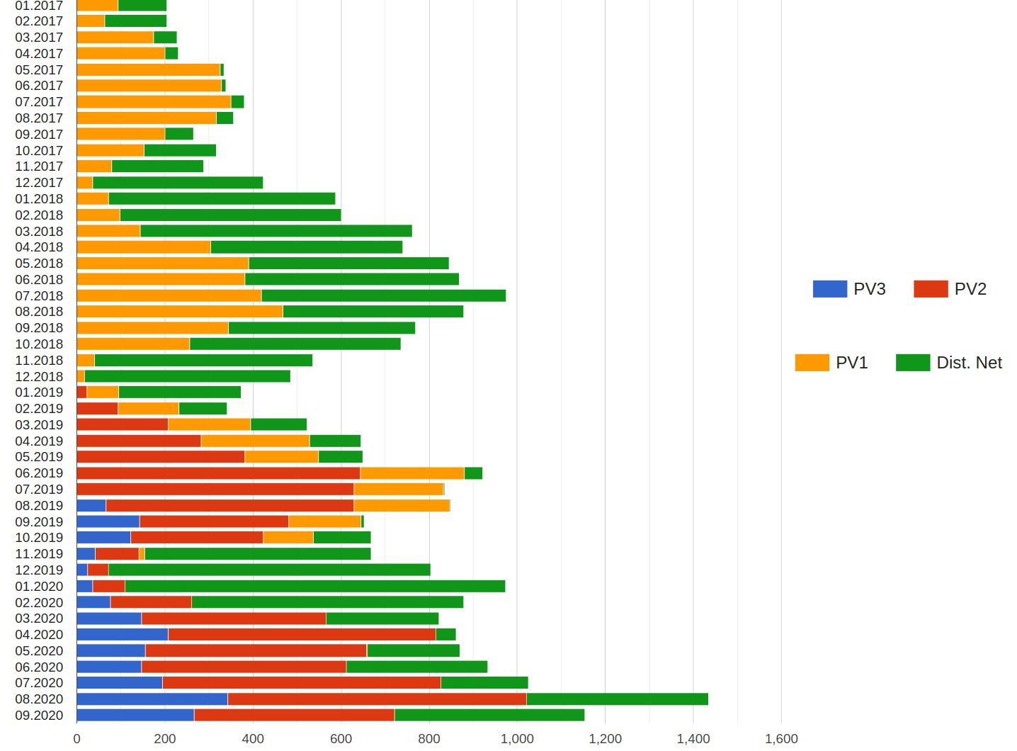 Je tu koniec septembra. Vyrobilo sa 712 kWh.