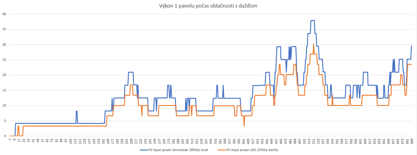 Dnešná výroba na 1 panel pri celodennej oblačnosti a daždi.