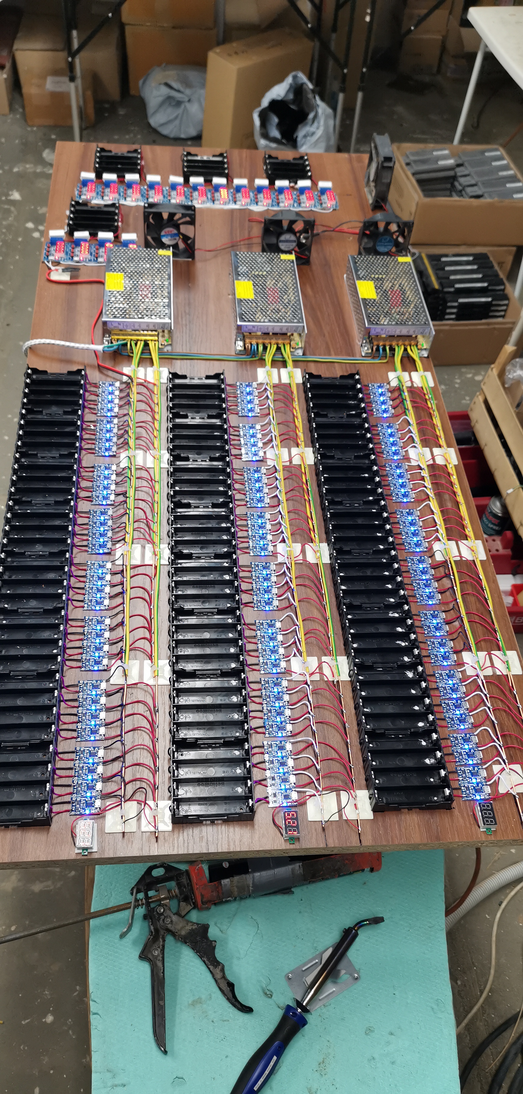 - článkov použiteľných (nad 1,5 Ah, bez zahrievania) je 2080ks, priemerná kapacita 2-2,1 Ah, ešte počítam že časť pôjde preč kvôli samovybíjaniu.