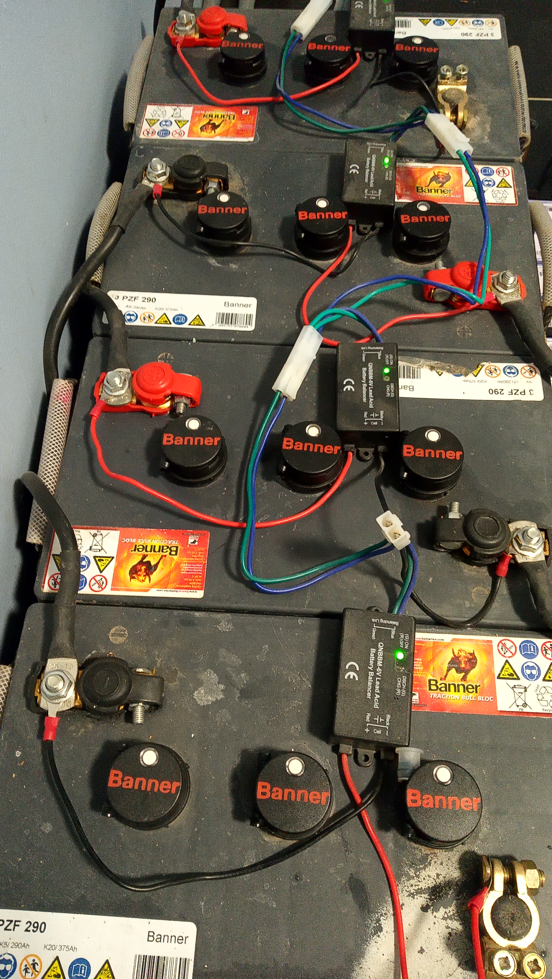 Nabízím k prodeji čtyři trakční baterie Banner 3PZF290 o kapacitě 6V 290Ah, zapojené do série 24V. Baterie jsou pět let používané, pravidelně udržované balancery a stále drží kapacitu přes 2 kWh. Jsou vybaveny ukazatelem hladiny elektrolytu a možností připojení hadic pro odvod plynů. Prodávám komplet s balancery nebo bez nich, vhodné pro offgrid systémy či záložní napájení. Osobní odběr v Opavsku, bez zasílání kvůli elektrolytu.
