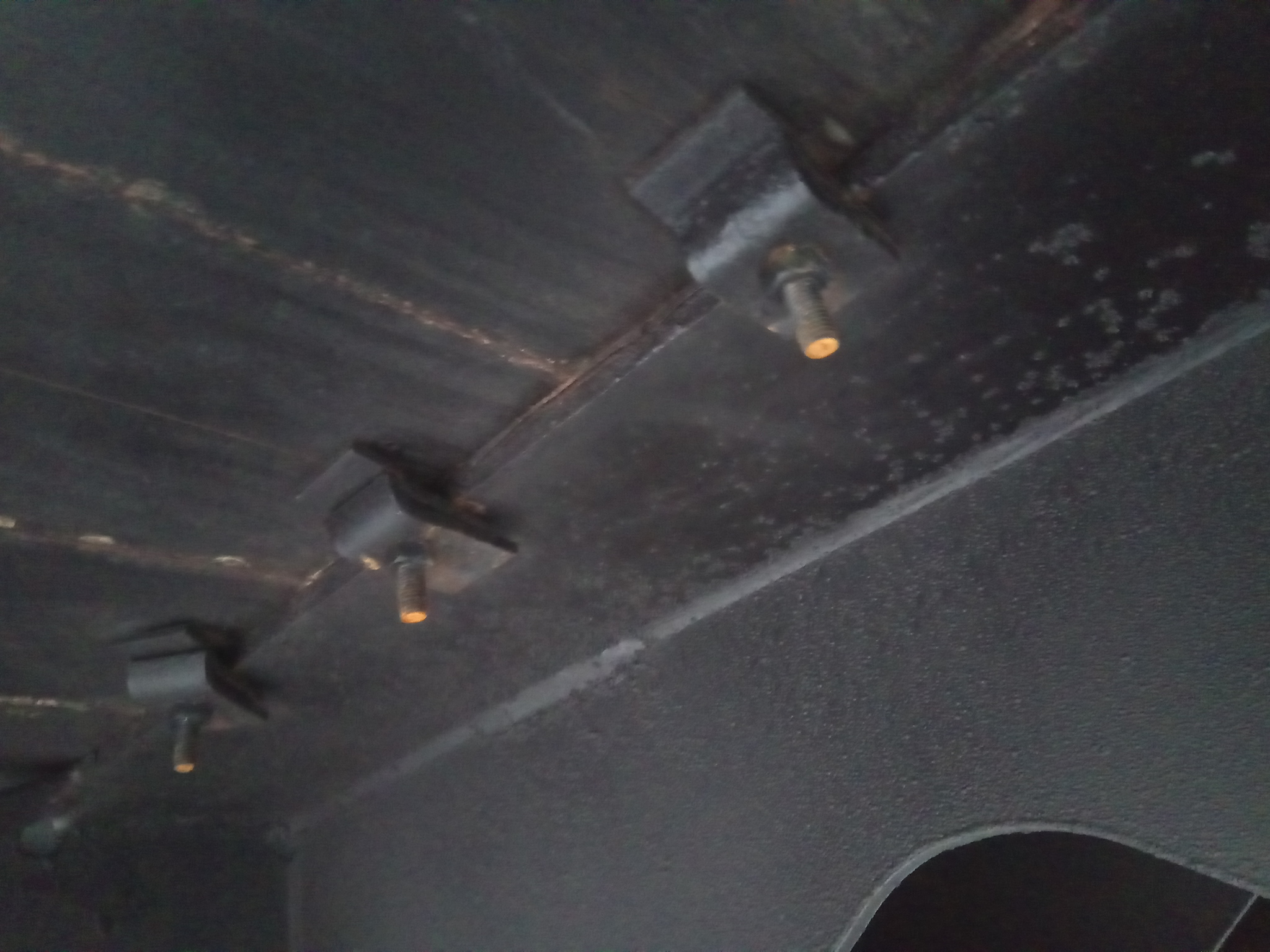 U jiných vozů jsem si všiml toho, že přes prkna jdou dlouhé šrouby, na které je dole před matkou nasazená zahnutá packa, která je zaháknuta za podlahový nosník (šroub s packou vypadá jako písmeno J).