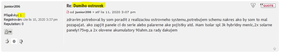 V kontextu nedávno vydaného "Varování ohledně off-topic" (https://forum.mypower.cz/viewtopic.php?p=136487#p136487) a souvisejícího škádlení mezi Adminem a Dumim, působí tento OT příspěvek právě v Dumiho vlákně jako Trest Boží.