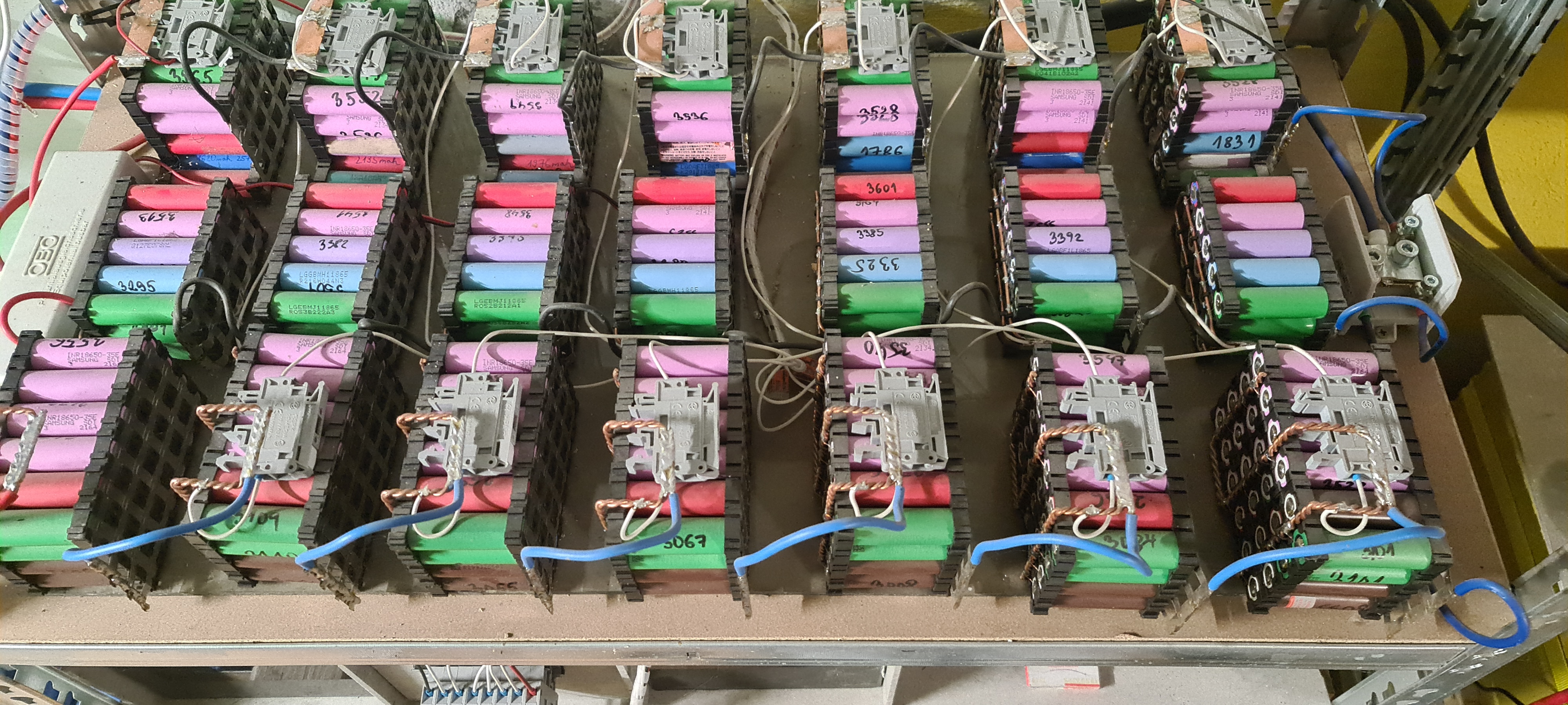 Nabízím k prodeji Li-ion baterii 24V složenou z kvalitních článků 18650 značek Samsung, Sony Murata a LG s kapacitou 153Ah. Přibližně 10 % článků je starších, ale stále ve výborném stavu, všechny s fakturami prokazujícími původ. Baterie je stále v provozu, maximální zatížení bylo kolem 30A, cena je 550 € s možností osobního odběru a dohody.