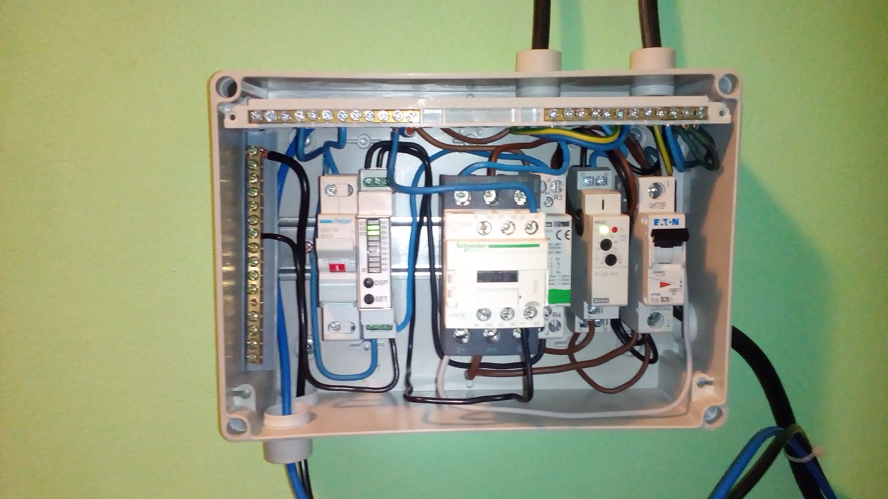 Včera jsem provedl zatím největší změnu systému. Přepínání sítí solár- čez bylo přes rok řešeno pouze manuálním přepínačem I-O-II. Takže nastala fáze automatizace. Hlavní prvek je programovatelné 3 výstupové napěťové relé od kamaráda TYTYČKa který ho vymyslel a vyrobil. Já jsem vlastně betatester. Vlastní přepínání je řešeno pomocí 48V stykače pro poslání 230V od měniče do domovního rozvodu a generování přepínacího signálu pro hlavní přepínací stykač s mechanickým blokováním přepínání. Zároveň jsem řešil i ohřev vody v bojleru z přebytků FV. Jako první byla výměna topného tělesa v bojleru z 2200W na 1600W. Samotné zapínání ohřevu taky inicializuje to programovatelné relé. V cestě je ještě proudové relé které kontroluje okamžitý odběr a je nastaveno že pokud je odběr v systému větší než 10A ohřev se blokuje. Takže mám řešeno ohřev a třeba praní v pračce nebo myčku nebo jakýkoliv větší odběr. Takže nemusím řešit řízení spotřeby pro ohřev.