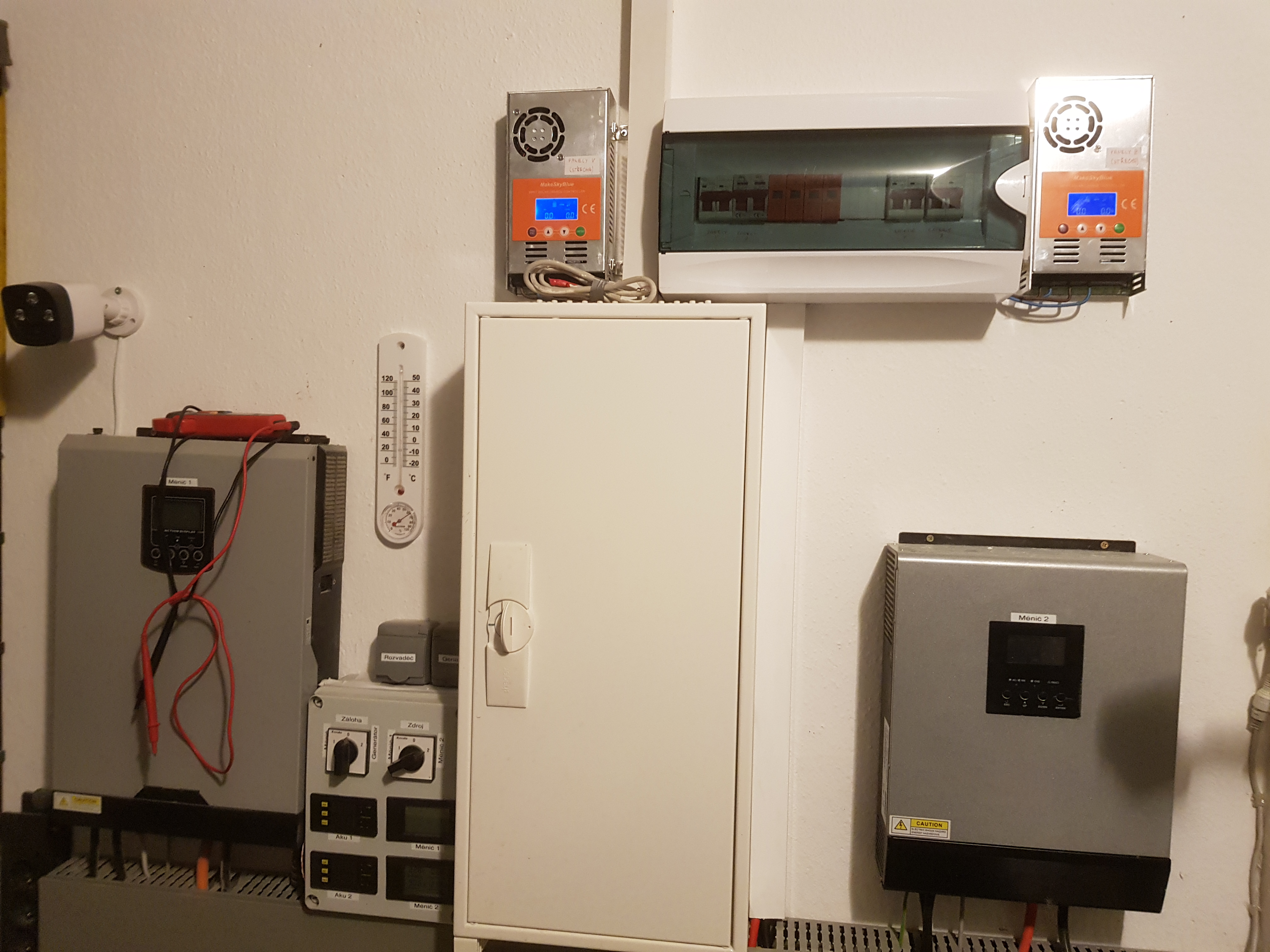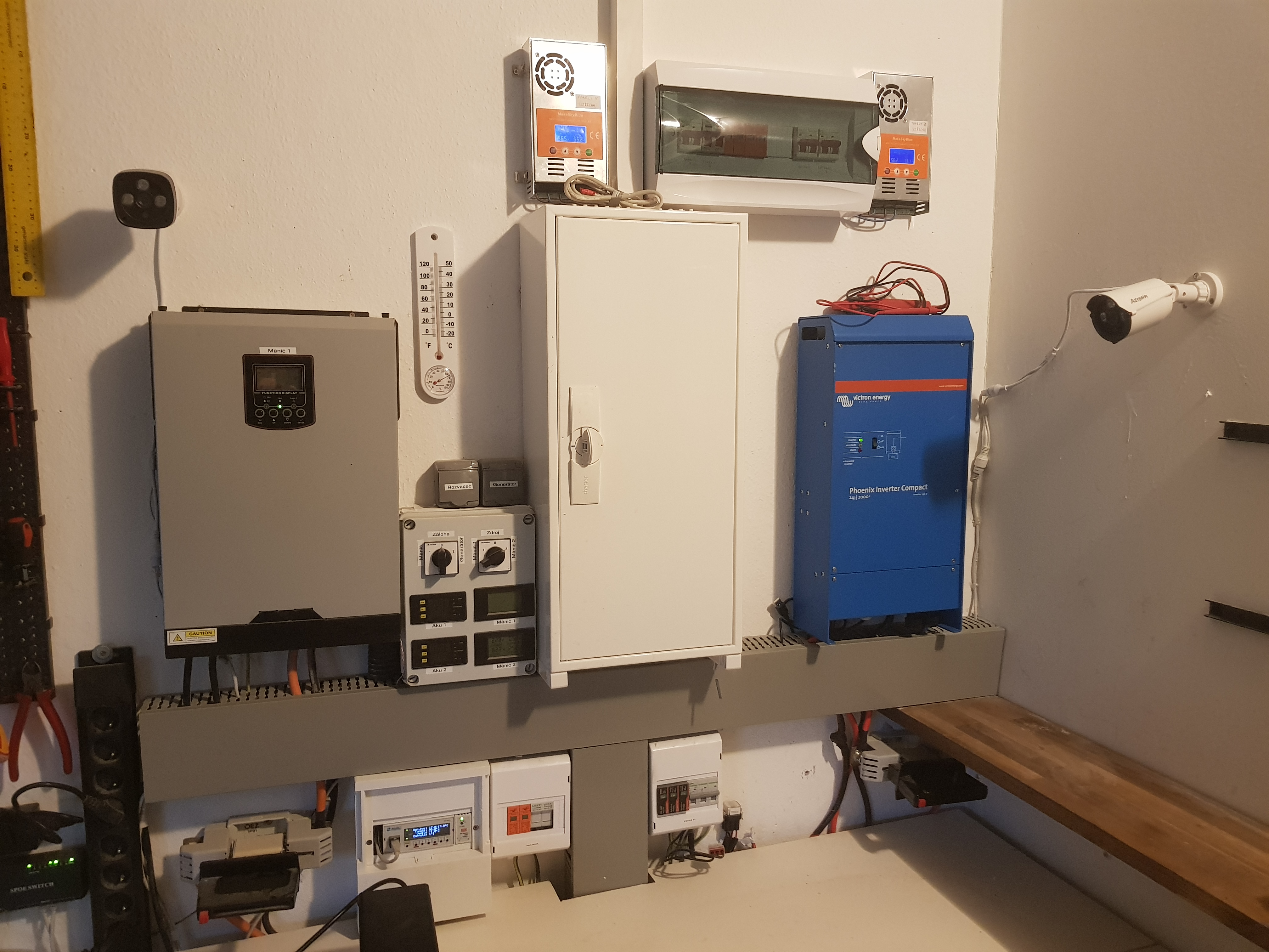 ostrov skoro 8kWp neustále ve stádiu zrodu: smartshunt(ex WBJR), MPPT150/45, MPPT 250/100(ex midnitesolar 150 clasic lite), 16S a různě P cca 340Ah Winston, MP II 5000,( ex Powerjack 8kW, ex samodomo cca 4kW). 48V DC rozvody a spotřebiče.