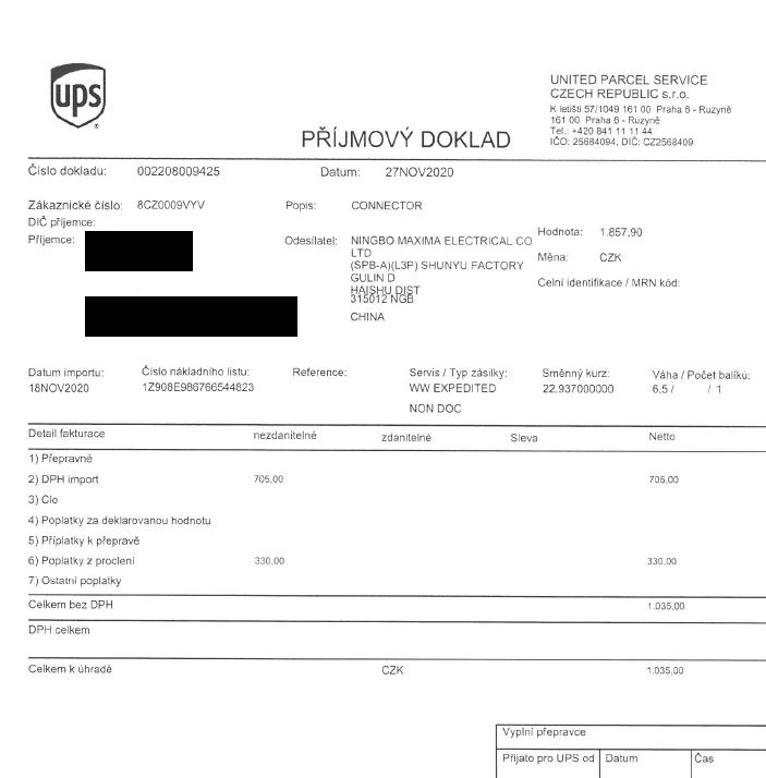 2. potvrzuji, že stačilo na ten email od UPS poslet výstřižky z objednávky na Aliexpressu