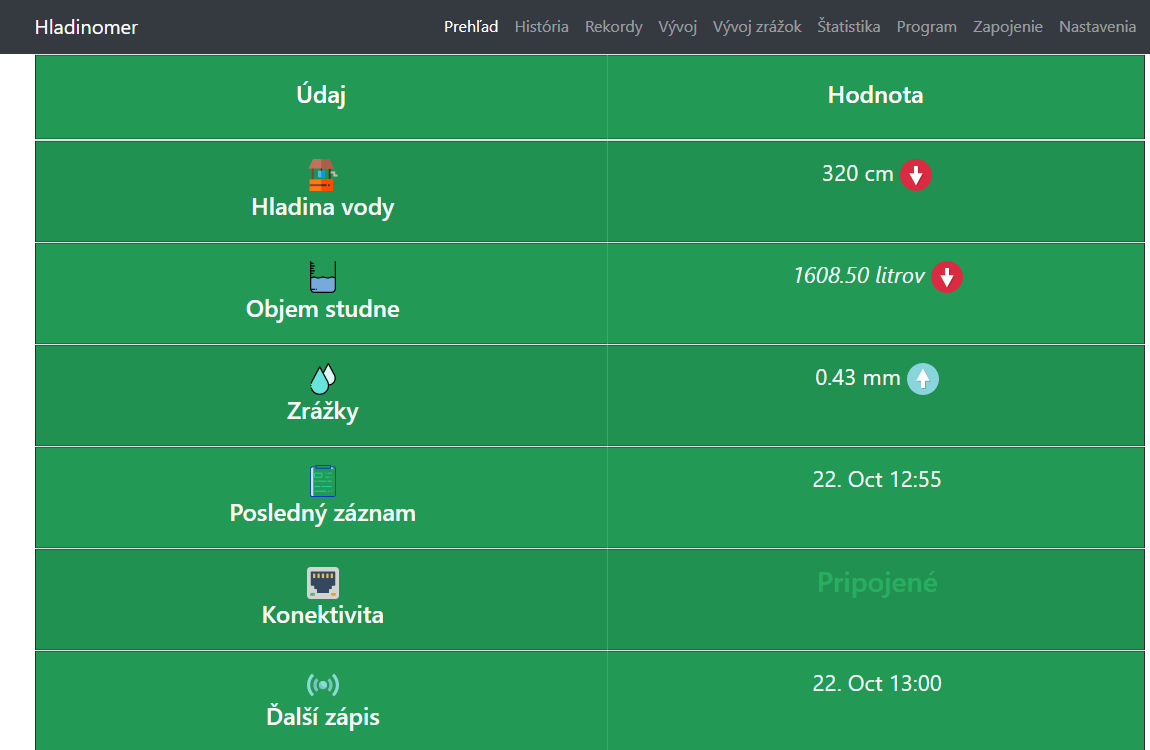 Rozhranie dostupné na: http://arduino.clanweb.eu/studna/