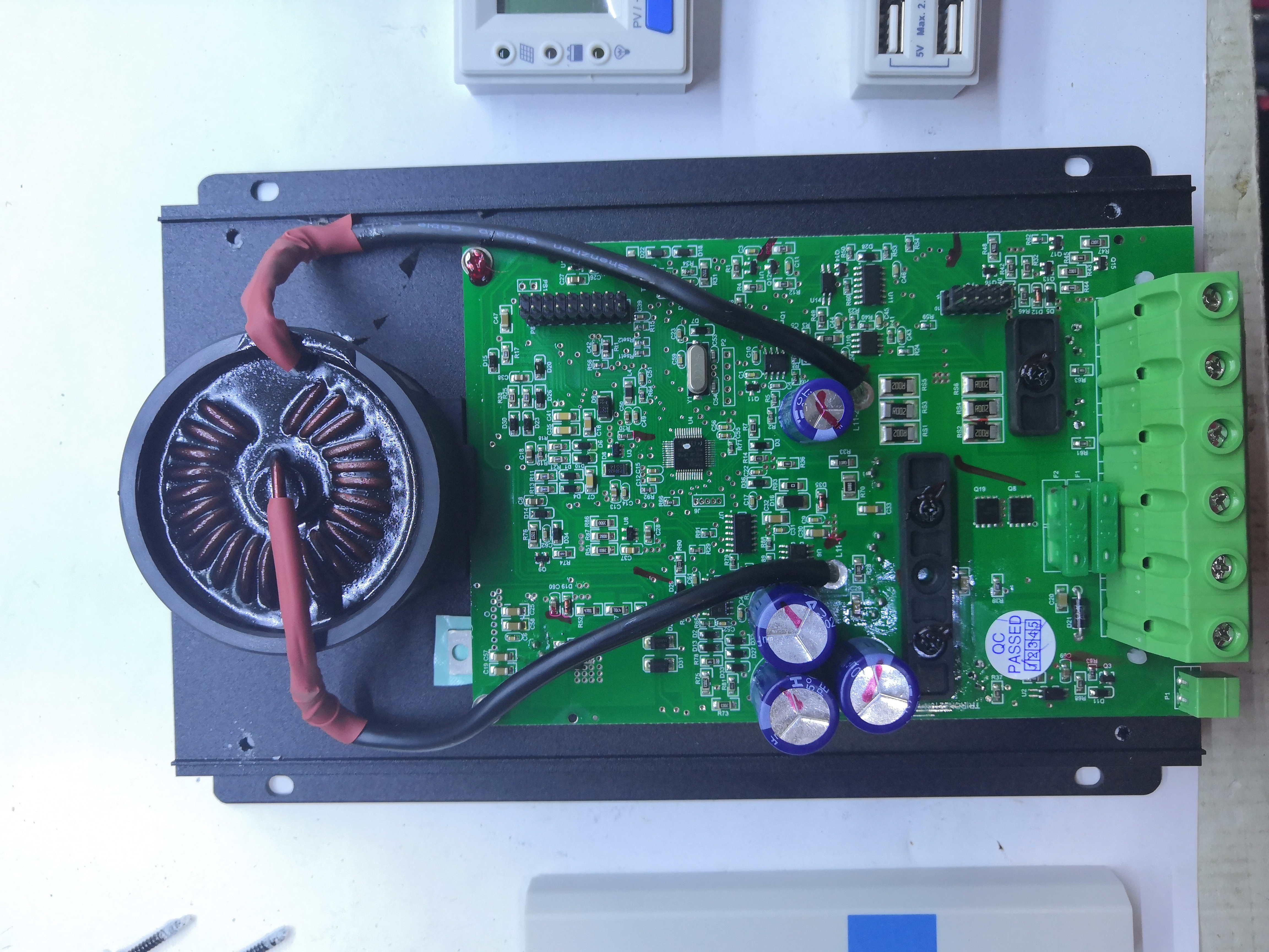 Mám doma Triron 3210N ,snažím sa to aktuálne dať do kopy a skúšať čo to dá ... Zaujímalo by ma či môžem na priamo na svorky ( load ) pripojiť záťaž 30A ,chcel by som tam dať 400W menič ( UPS , ktorý mám doma ) a vidieť je ho spotrebu a tak ( cez pc ) ...a takto to vyzerá z vnútra ...