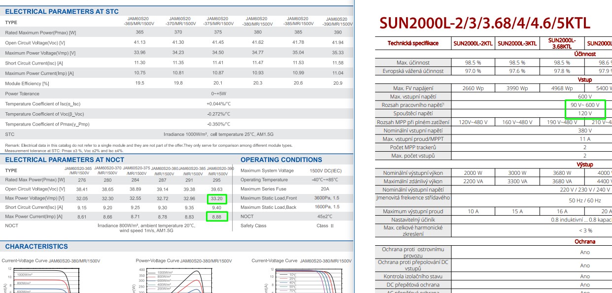 Hlavně nerozumím jak je to s mppt. Měnič má 2 mppt a teď nevím jestli můžu použít pouze jeden mppt nebo musím oba tzn. rozdělit 5 panelů na 2 okruhy - ale to nebude rovnoměrně a taky nevím jestli mppt bude mít v tomto případě dostatek napětí z 2 nebo i z 3 panelů vzhledem k tomu že toto mppt startuje prý od 150V (zas tuto hodnotu jsem v technickém listu nedohledal pouze někde v článku na netu..) a panel dává asi 40V-48V (zas v technickém listu je víc hodnot a nevím kterou použít..) a jestli je toto napětí při plném osvitu apod..