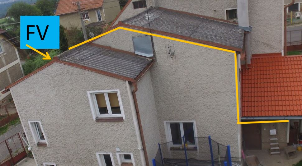 Stačí jeden "husí krk" (nebo trubka) a dovnitř vtáhnout dva solární vodiče nebo raději natáhnout vodiče v samostatných chráničkách? Bude tam 300VDC. Nebo máte nějaké "lepší" řešení? Přikládám obrázek s vyznačenou trasou vedení. Odpojovač a svodič přepětí bude až dole u kotelny (tam co jsou opřené ty štafle).