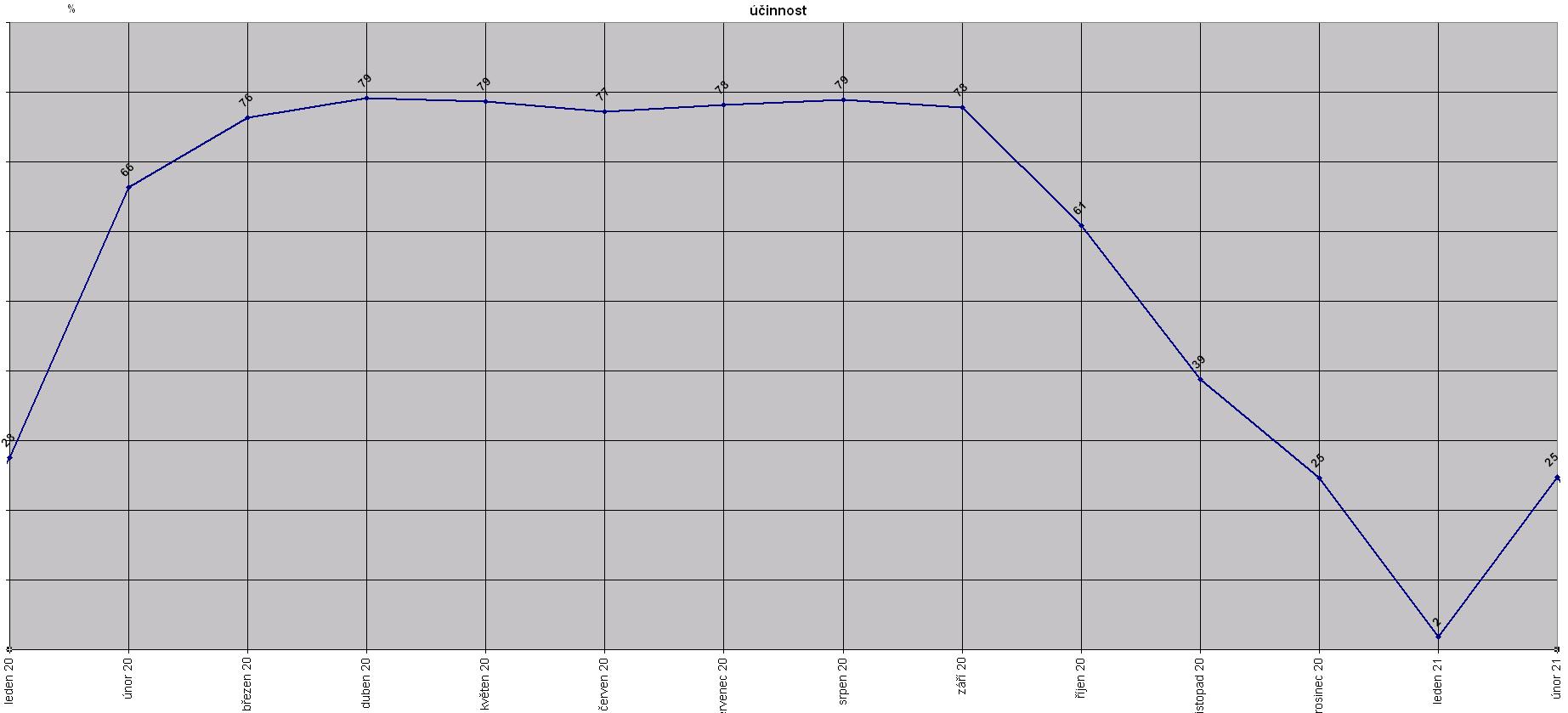 Pro zajímavost přiložím reálný roční průběh průměrné účinnosti v % v závislosti na čase: