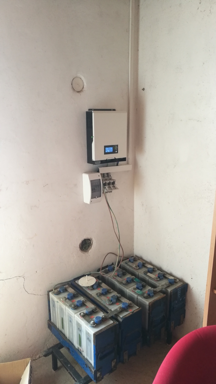 Tak elektrareň je skoro hotova,ale naštvany som bol. Vôbec nič nebolo nachystane,odpajače,poistky,kable,dokona ani poistkova krabica nekupena. Celu montaž som iba improvizoval,použil len to čo som mal doma a dokonca ani vystup z meniča sa nedal nikam napojiť,lebo nič nebolo pripravene. Baterie som zatiaľ požičal moje luhove,kym sa niečo ineporiadne zoženie.