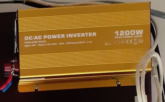 Menič napätia Soluowill NP1200-24, 1200W, 24V DC, čistý sínus - veľmi málo používaný len pre vyťažovanie do bojlera 500+500W - cca 90€