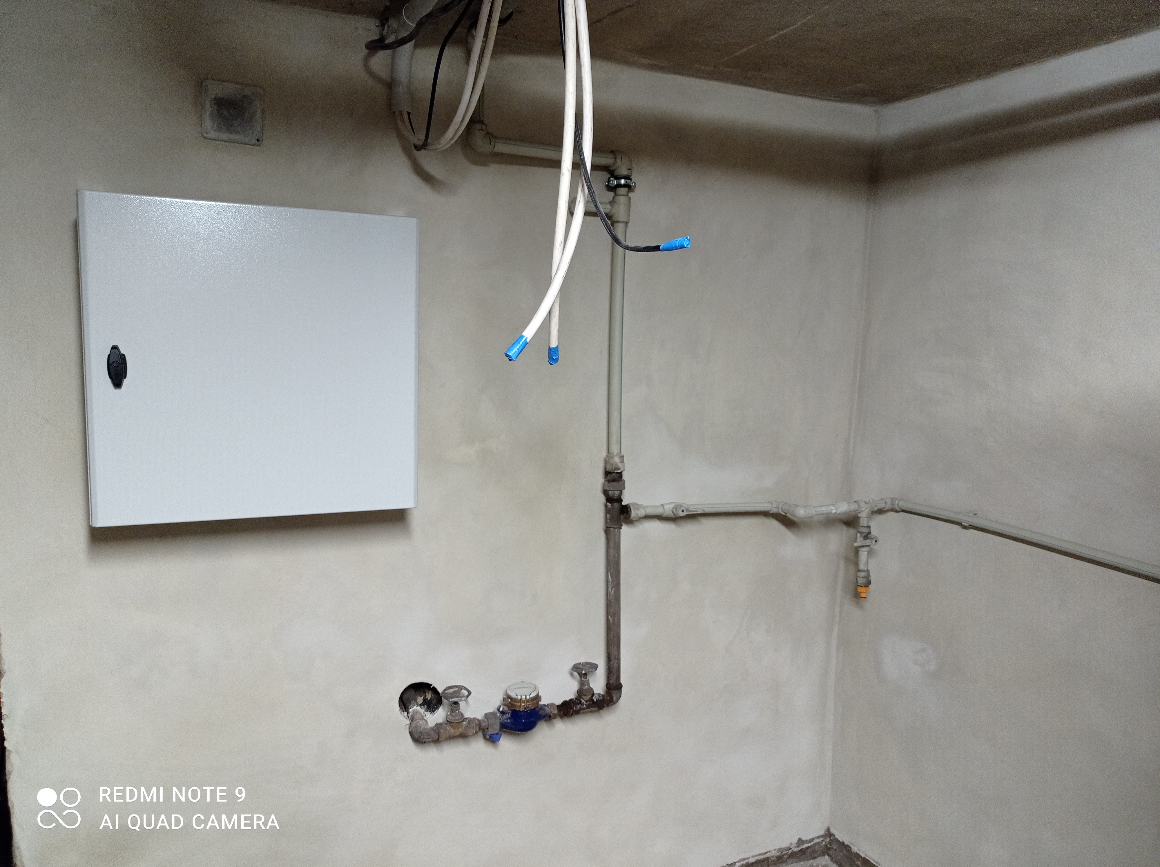 ), asi jsem měl koupit nějaké originální těsnění, ale nevím co tam má být, nakonec jsem pod něho dal kroužek vyřezaný z teflonové desky. U rozvaděče jsem se rozhodoval mezi levnějším plastovým a plechovým Schneidrem, nakonec jsem připlatil a myslím si že toho nebudu litovat. Před instalací rozvaděče jsem musel vyřešit několik problémů - úprava vodního potrubí(nemám vyfoceno) které mu stálo v cestě a hrůzná stěna na které měl viset. Musel jsem oškrábat stěny, napenetrovat a natáhnout znovu jemnou omítkou, ale aspoň mám klid a nebude mě to v noci strašit kdybych se na to vyprd. Rozvaděč jsem vypodložil kvůli tomu že je na obvodové zdi která je celá pod terénem, je na ní zvenčí sice izolace, ale po těch letech to už asi nebude ono, takže pro jistotu vypodložen ať není v budoucnu na vlhké stěně. Jako podložky jsem použil spojky na ppr trubky 32, což je tak 4-5cm od stěny. Příští týden, musím nakoupit kabelové žlaby, měnič BEL, natahat další kabel a konečně začít zapojovat ať mám do jara vše připravené před instalací panelů. Zároveň s FVE bych chtěl vyměnit kotel a koupit akumulační nádrž 1000l a do ní nainstaluji topné těleso pro FVE a topné těleso napájené z DS. Topné těleso z DS bude sloužit jen jako záloha kdybych onemocněl a nebo měl nějaké zranění které by mi znemožňovalo chodit topit, toto jsem si mohl letos vyzkoušet s covidem, kdy jsem byl schopný si tak maximálně zajít na záchod(hold každý má jiný průběh nemoci). Díky dvěma samostatnými topnými tělesy nemusím řešit žádné přepínání mezi DS a FVE.