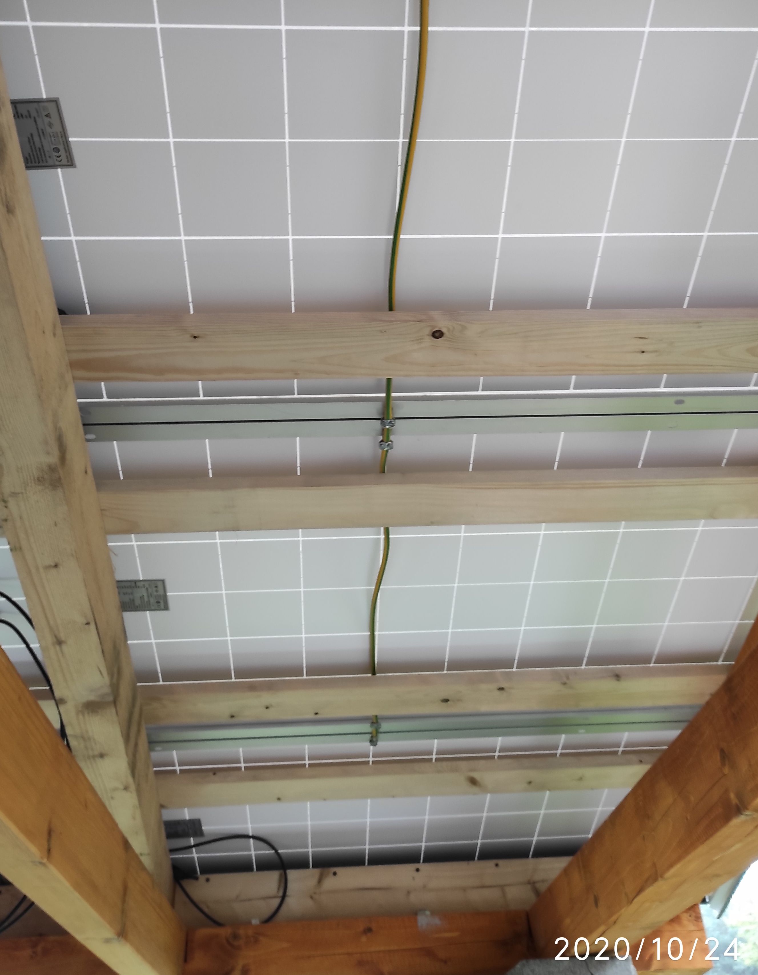 To ladik: když si zvětšíš fotku v mém druhém příspěvku, kde jsou vidět panely zespoda a dvě propojky pro zemnění, tak jedna kapka je vidět mezi kabely v křížovém spojení a druhá níž, ve spojí dvou panelů zhruba uprostřed nich.