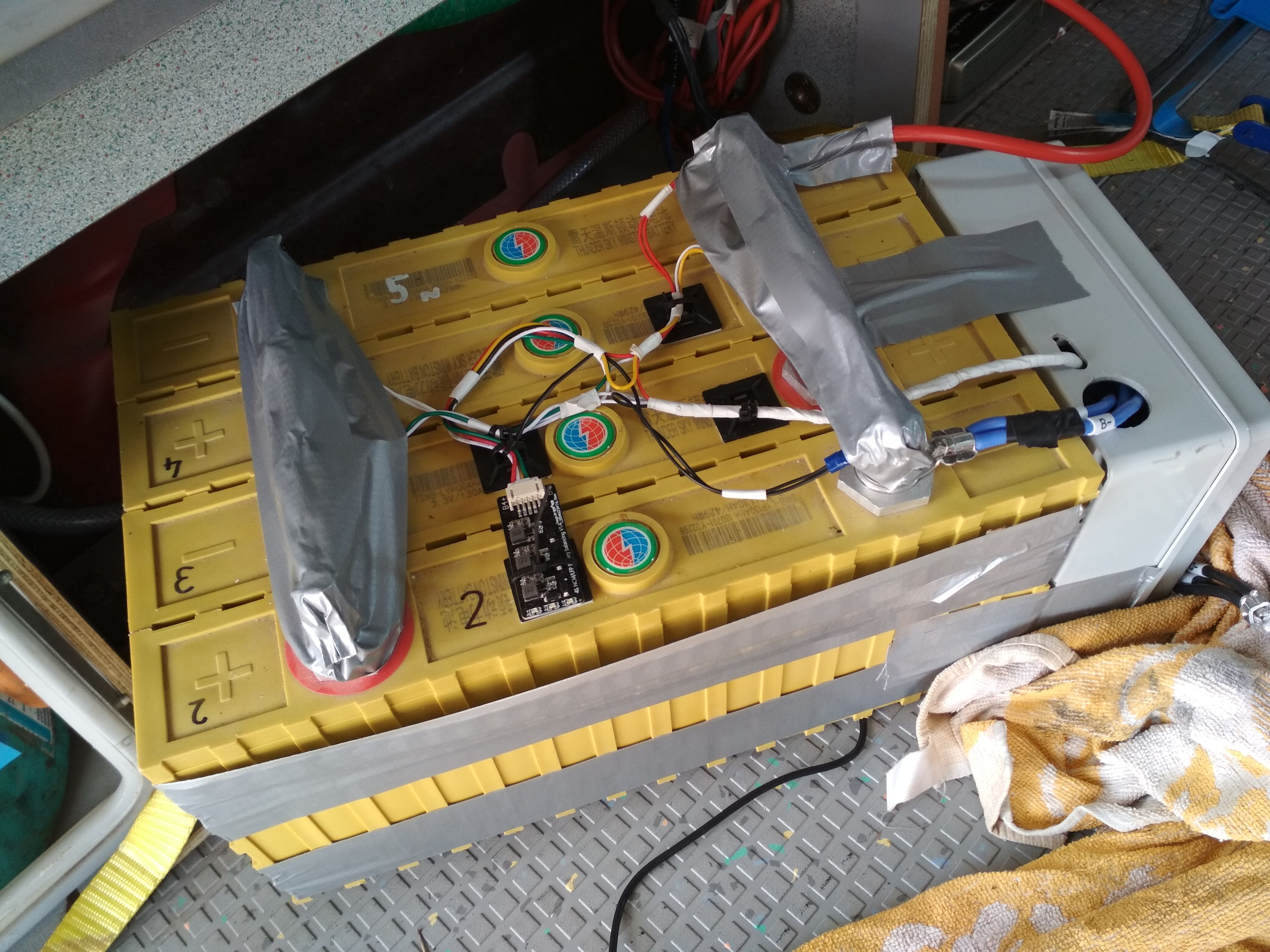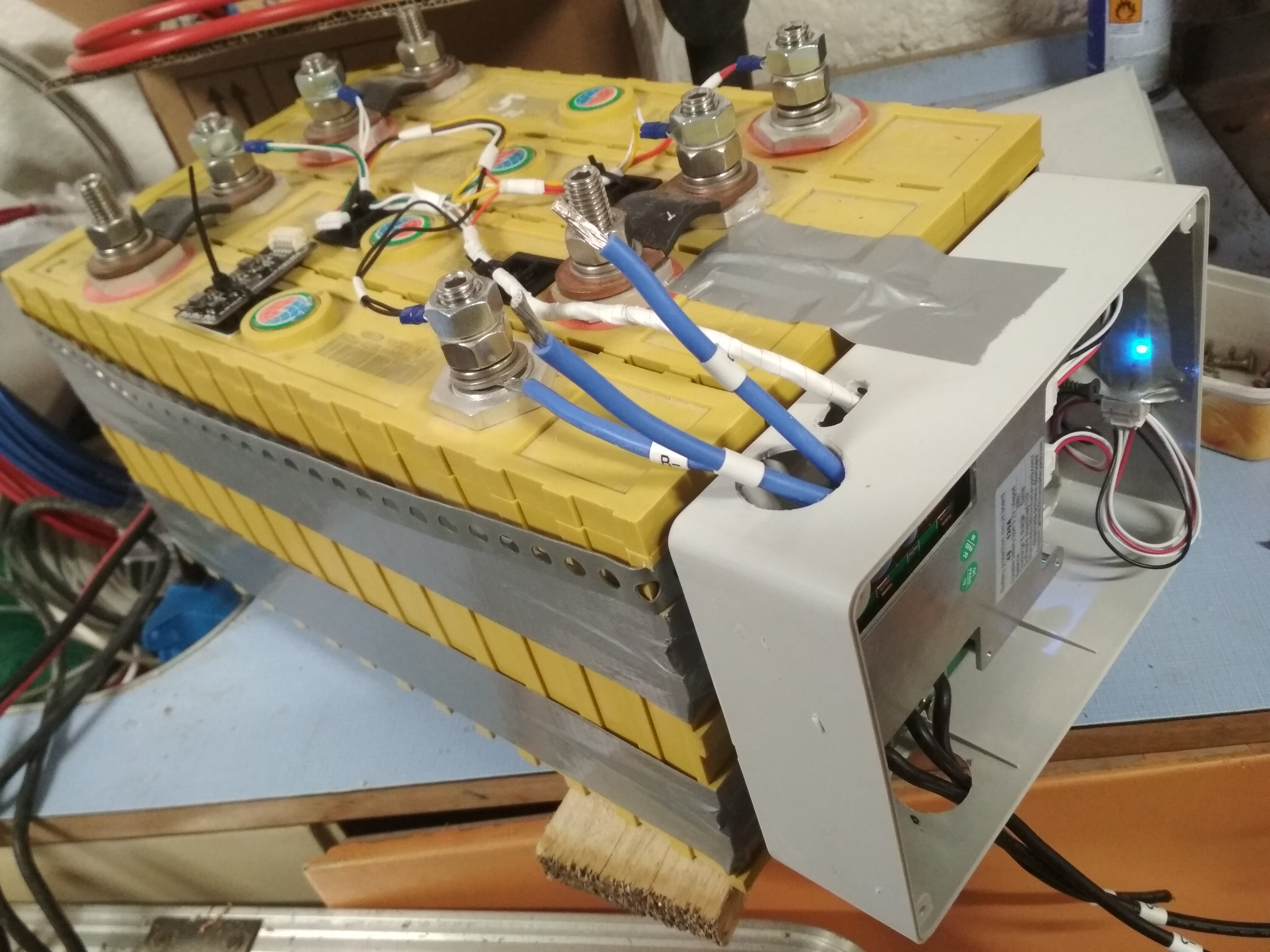 BMS je na 120A. Očekávané maximální proudy jsou: solar 15A, síťová nabíječka 20A, nabíjení z alternátoru do 50A, měnič 20A, 12V spotřebiče 20A. Ještě spekuluju, že tam udělám více děr. Prostě se nějakého přehřívání nebojím. Jestli to dobře chápu, BMS má dvě teplotní čidla - jedno na drátku, které jsem zasunul mezi články (to je pod tou štříbrnou páskou zvrchu) a to druhé asi bude uvnitř BMS. Tedy budu moci potom sledovat, jestli je teplota OK.