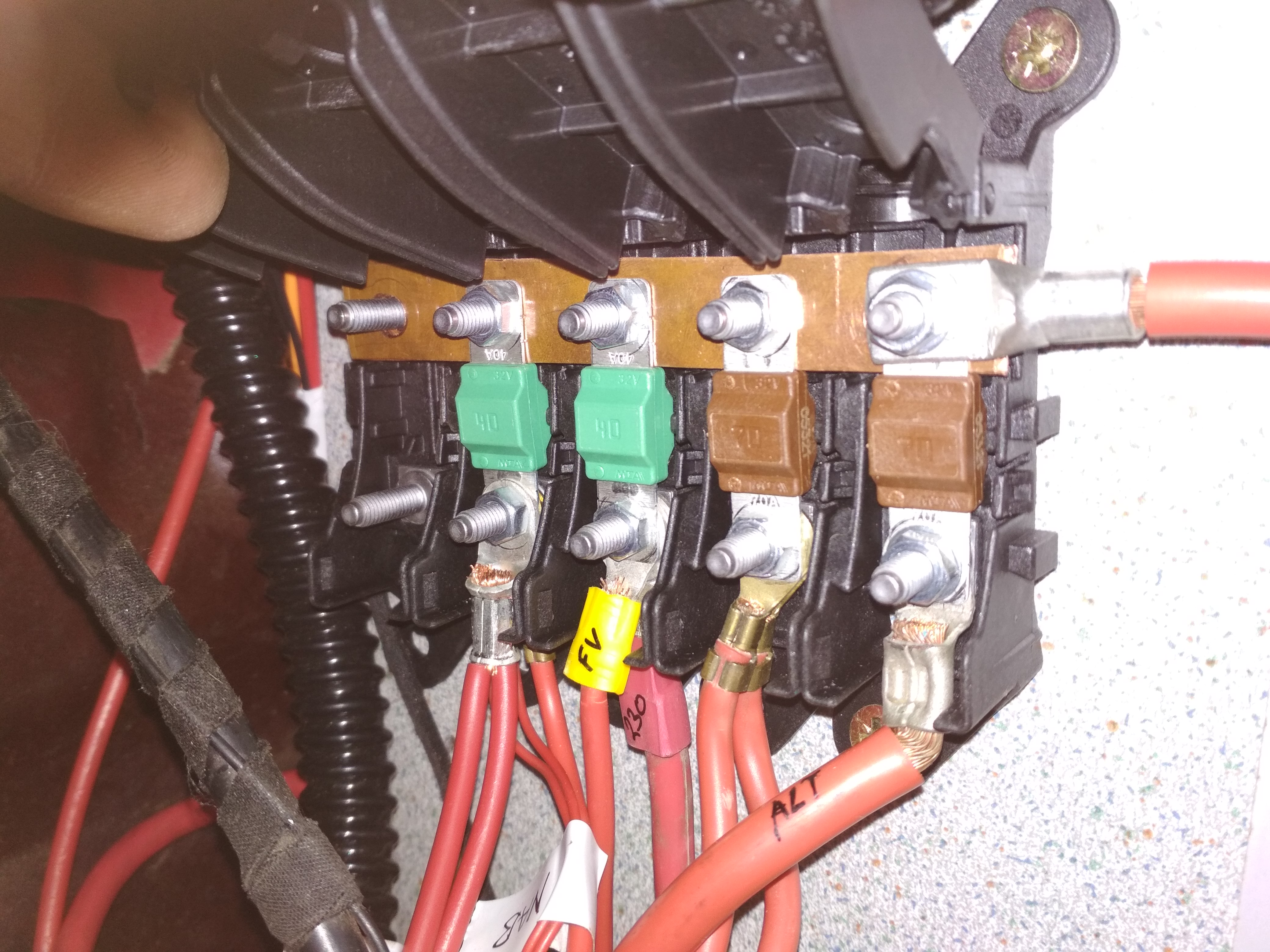 Jak nabíjet baterku za jízdy z alternátoru? Originální řešení s Pb gel je 75A propojovací relé ovládané D+ a připojení 2x6mm2. (na fotce výše je to ta malá černá krabička vlevo) Provedl jsem několik měření: alternátor dává stabilních 14.4V. S polovybitým gelem tam teklo 30A. S nabitým Lithiem tam teklo 23A. Vybité Lithium jsem ještě nezkoušel. Dal jsem tam 70A pojistku.