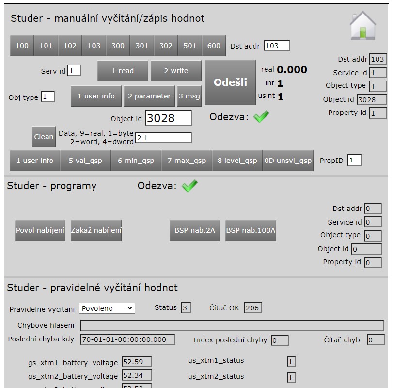Zkoušel jsem leccos, ale zatím jsem na nic nepřišel - například 3028 mí stále při overloadu vesele vrací 1, podobně jako když Studer normálně funguje. Jediné, co mne napadlo, je jít přes logiku a vyčítání AUX2.
