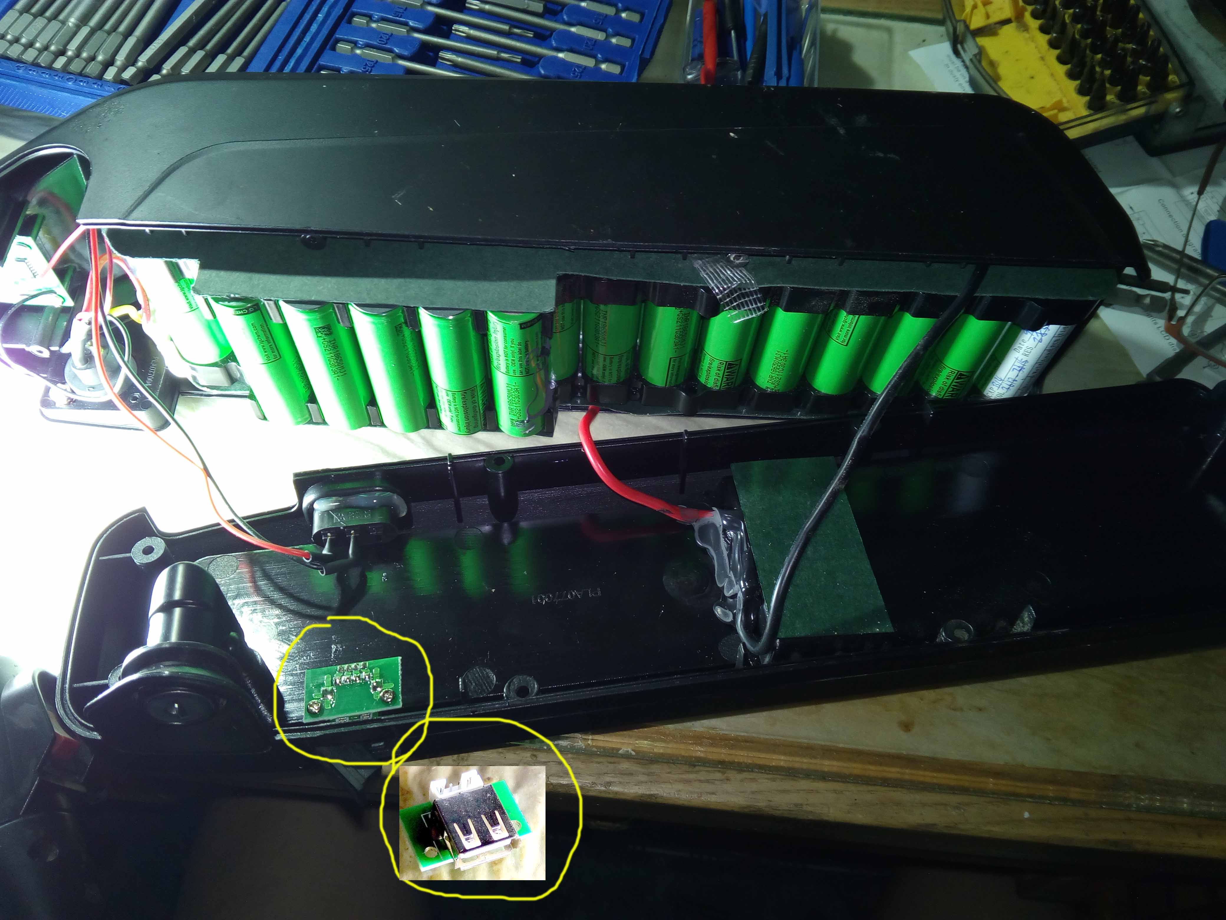 Rozdělal jsem baterii od e-kola a koukám, že USB port není připojen. Když jsem to kupoval, tak o funkčním USB portu v popise nic nebylo, tak si ani nemohu stěžovat, že nefunguje https://www.aliexpress.com/item/32827447339.html. Je to normální, že ho používají jako záslepku, aby tam nebyla díra, kterou teče voda, nebo je tam někde schovaný DC/DC měnič, od kterého stačí natáhnout vhodný kablík a zastrčit ho do svorkovnice USB portu? Ať to dál nerozebírám zbytečně, je to už lepené. Protože pokud tam v hlubinách DC/DC měnič není, tak vezmu nějaký jiný a dám ho z otevřené strany, trochu místa by na něj mělo být.