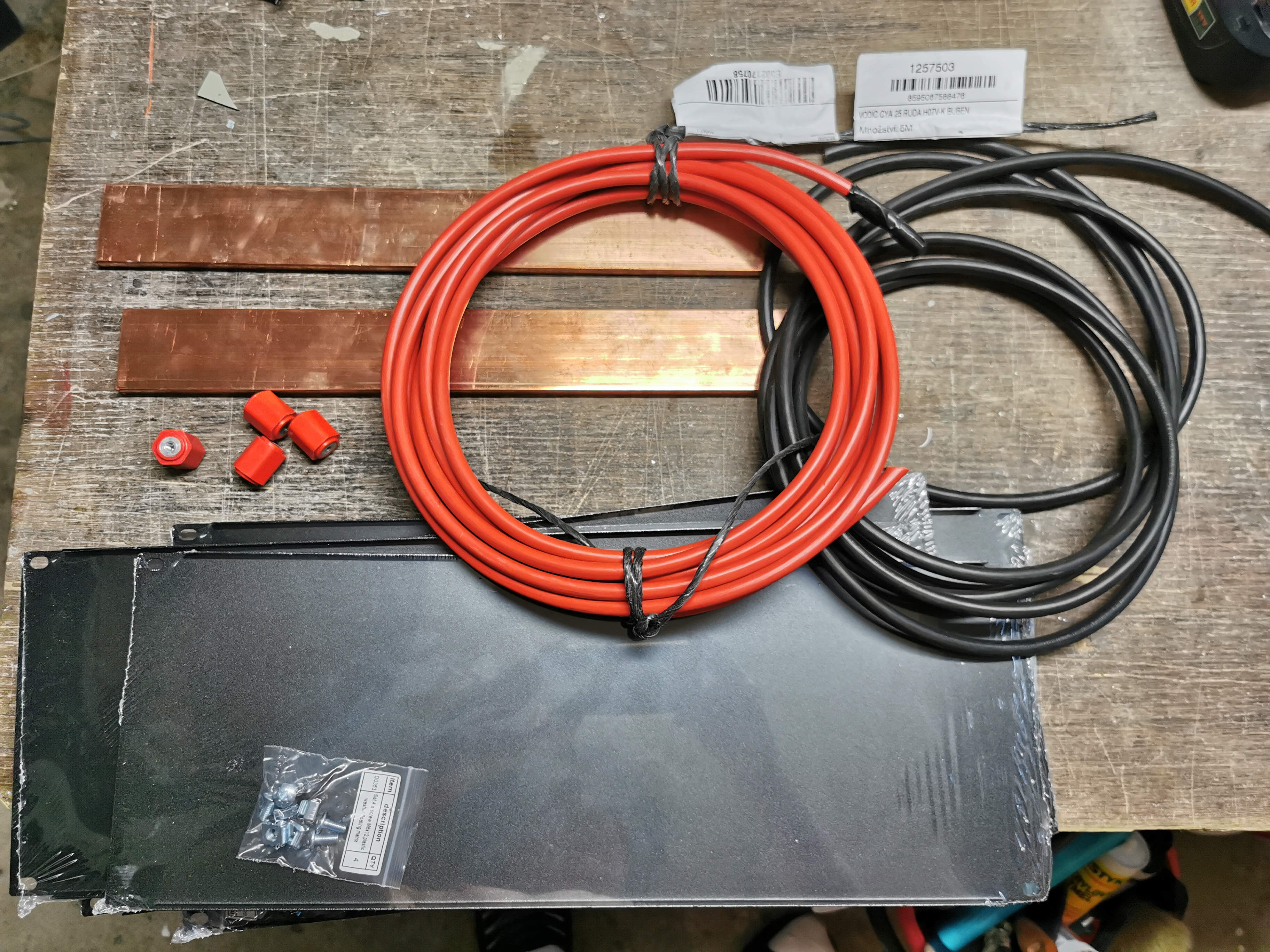 K racku přidám kabely 25mm, CU pásnice, izolátory, odpojovač na nožovou pojistku. Kabelové kanály plastové již částěčně namontované.