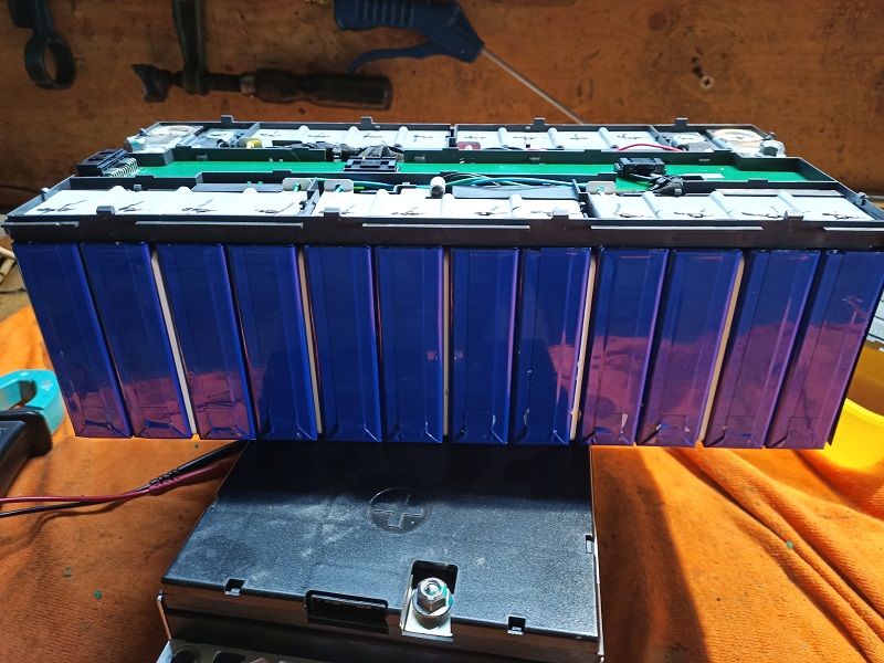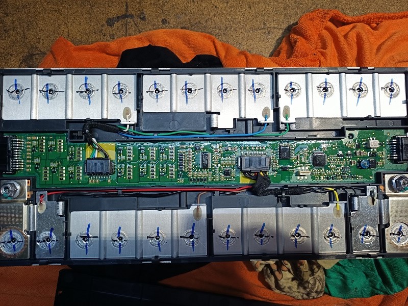 Rozdělat ty kostky jdou snadno,odsekne se to Al chlazení okolo,vylomí plošňák mezi póly a vylomí krycí plast.Pak je ale každý pól svařován laserem se sousedním přes vrstvu Al plechů,je to měkké a jde to kleštěma vyškubnout od pólu tak,že tam zůstane ten návar.