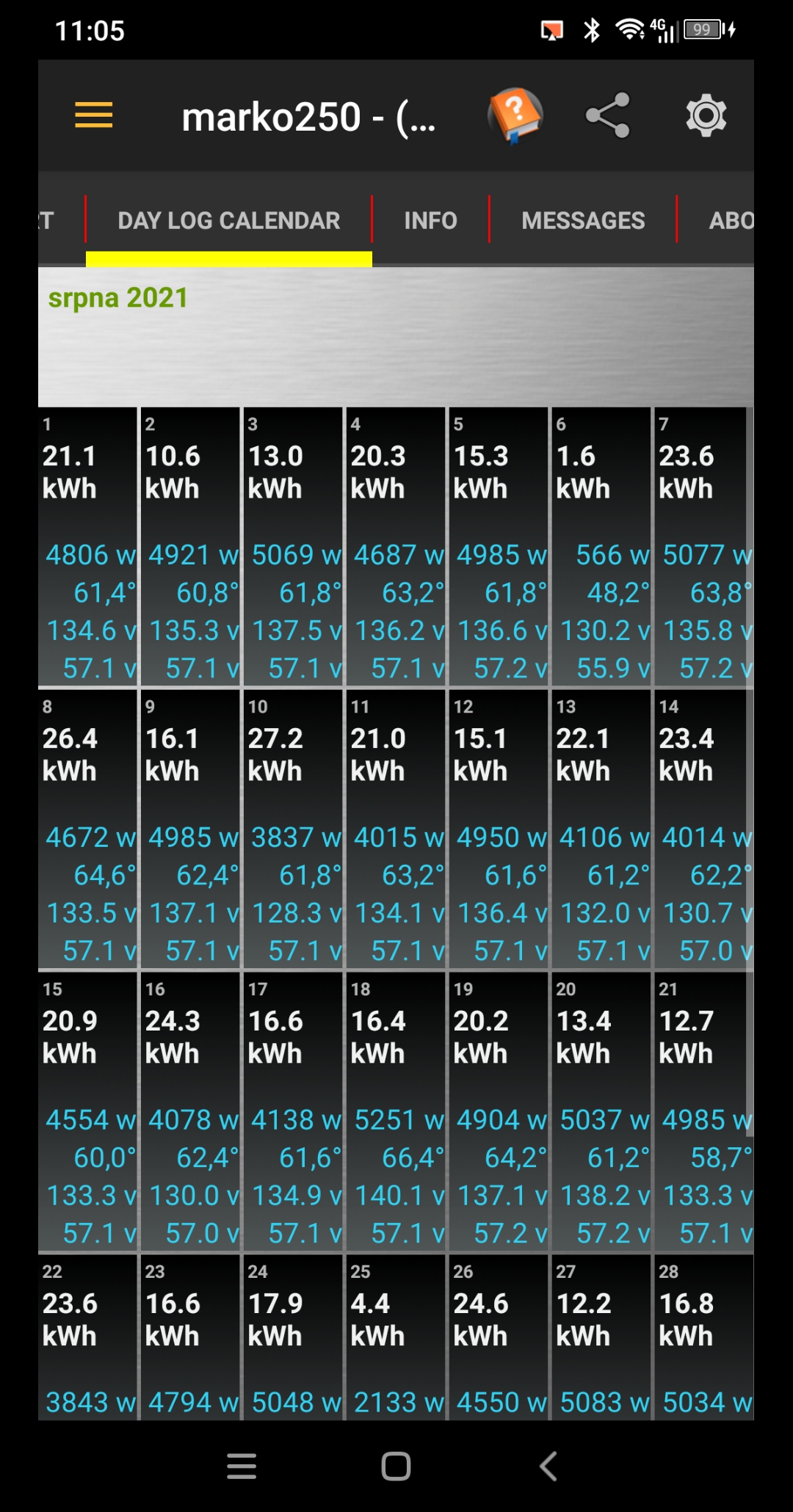 29MWh v AC za měničem+1.6MWh DC přímo z panelů do spirál od roku 2016,120kWh AC odebráno z DS od ledna 2021.