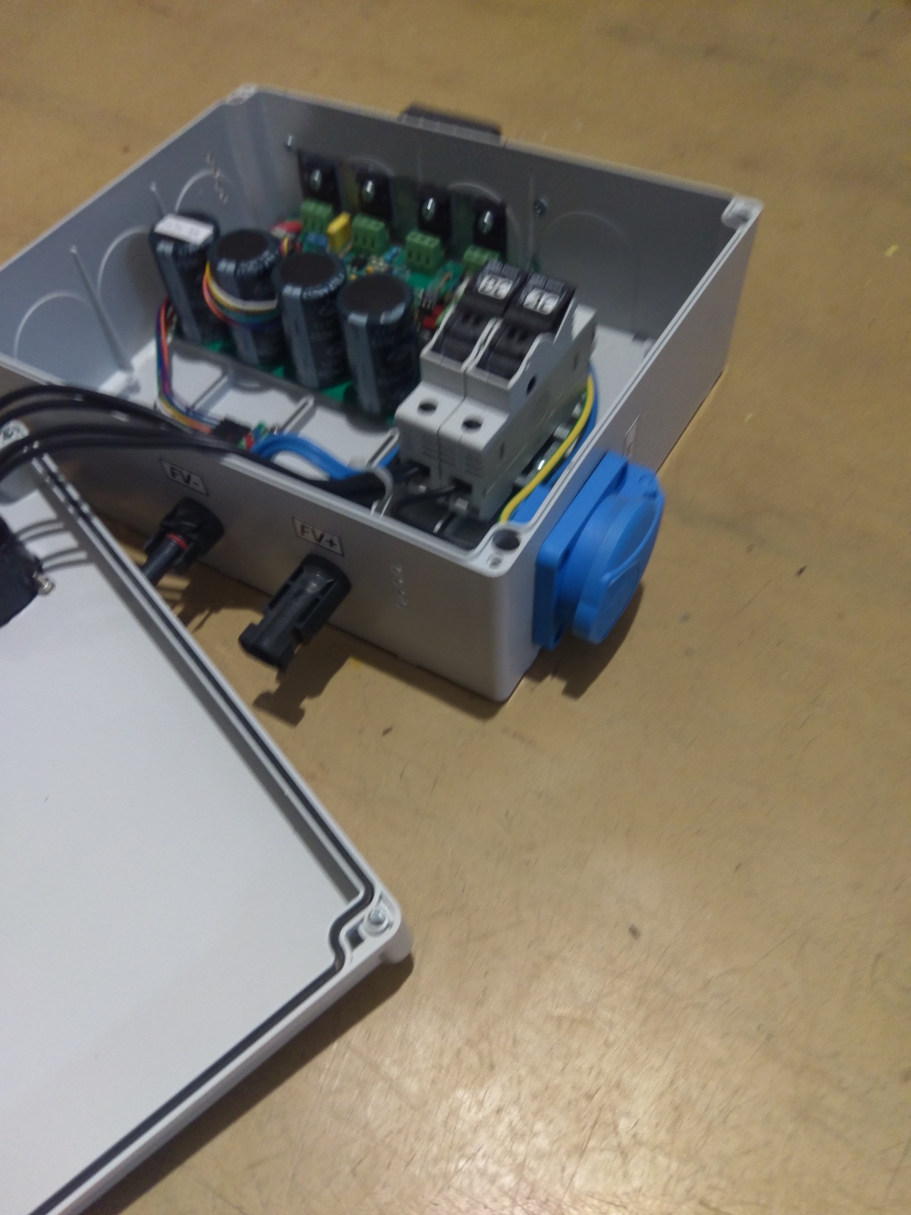 ne, ale aspoň se snažím dodržet normy. Tj chladič mám vevnitř, nemám kovový šroubky procházející krz kryt. Dyť od napětí panelů tě v tomhle případě dělí jenom izolační podložky pod tranzistorama. To určitě na 4kV nestačí. Navíc když ten mosfet vybuchne, tak se kolikrát přivaří k chladiči. O přepěťovku tady není ani pokus, i když MC4 konektory navádějí, že to má být připojeno přímo k panelům, o tom, k čemu navádí zásuvka na výstupu nemluvě...