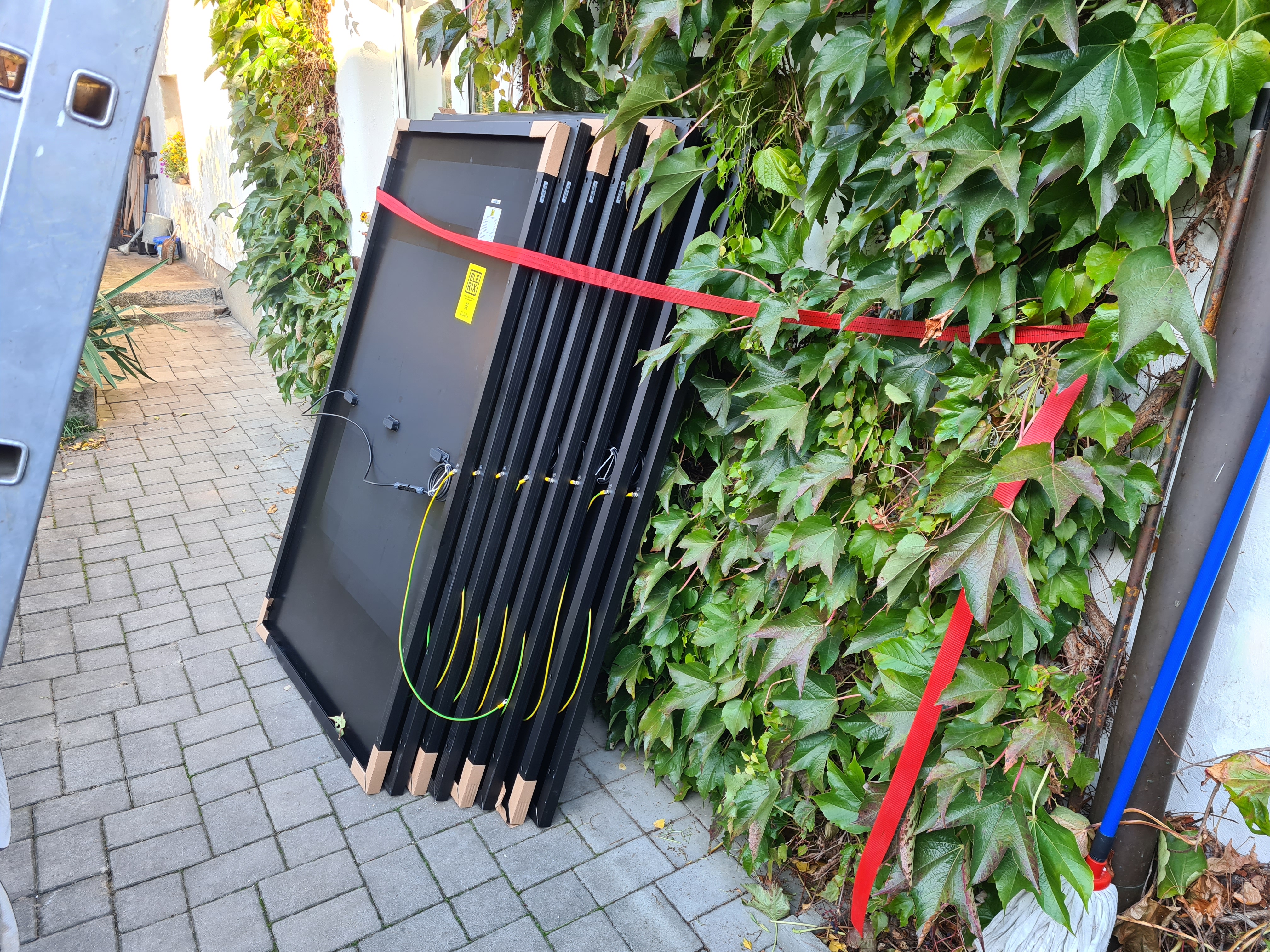Co se týká nošení panelů na střechu v jednom člověku, tak to je mazec. Vzpomněl jsem si na @youdovo "vytlačím panel před sebou po žebříku" ..... a sakra a jak .... Tak můj způsob byl, že panel 1755x1038 jsem táhl za sebou. Nakonec mi to připomínalo posilovnu, kde jsem byl asi jednou pře 20lety, celý panel povytáhl a bokem ho nastrčil na střechu...