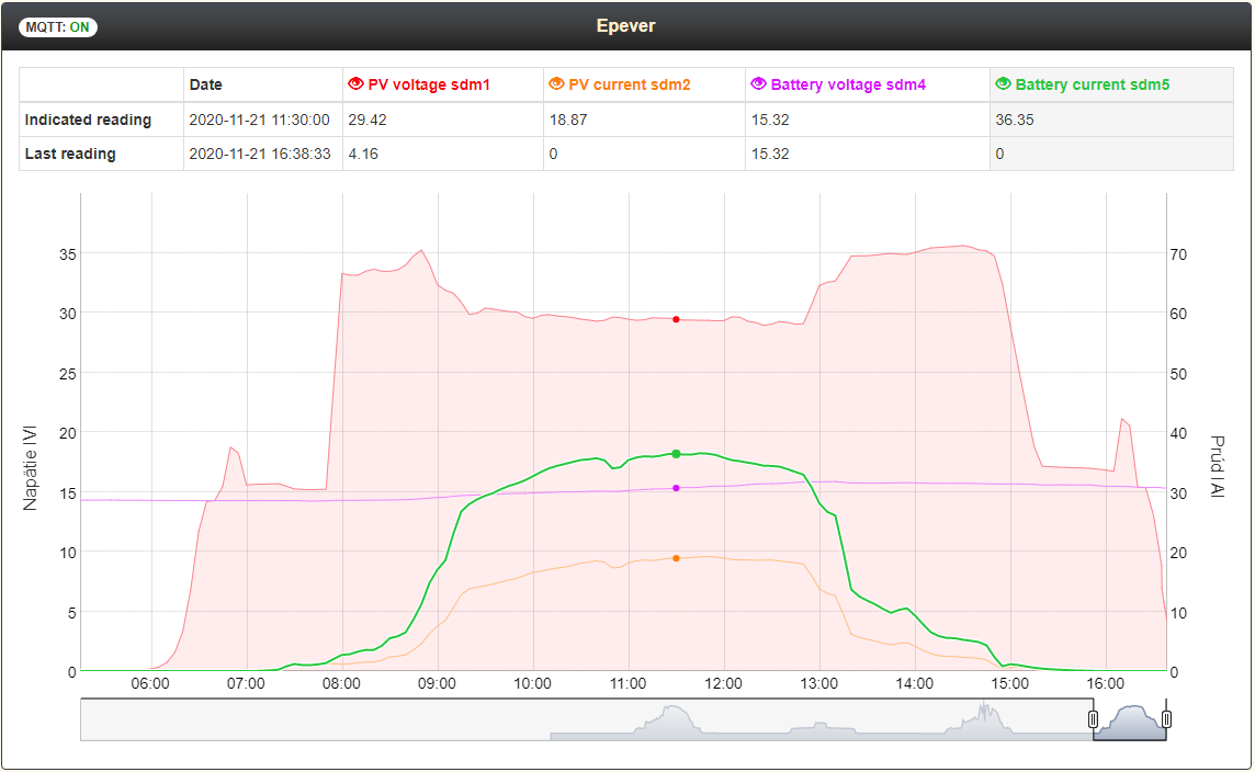 Ako som už písal v LK3.5 funguje komunikácia cez Modbus s regulátorom Epever.