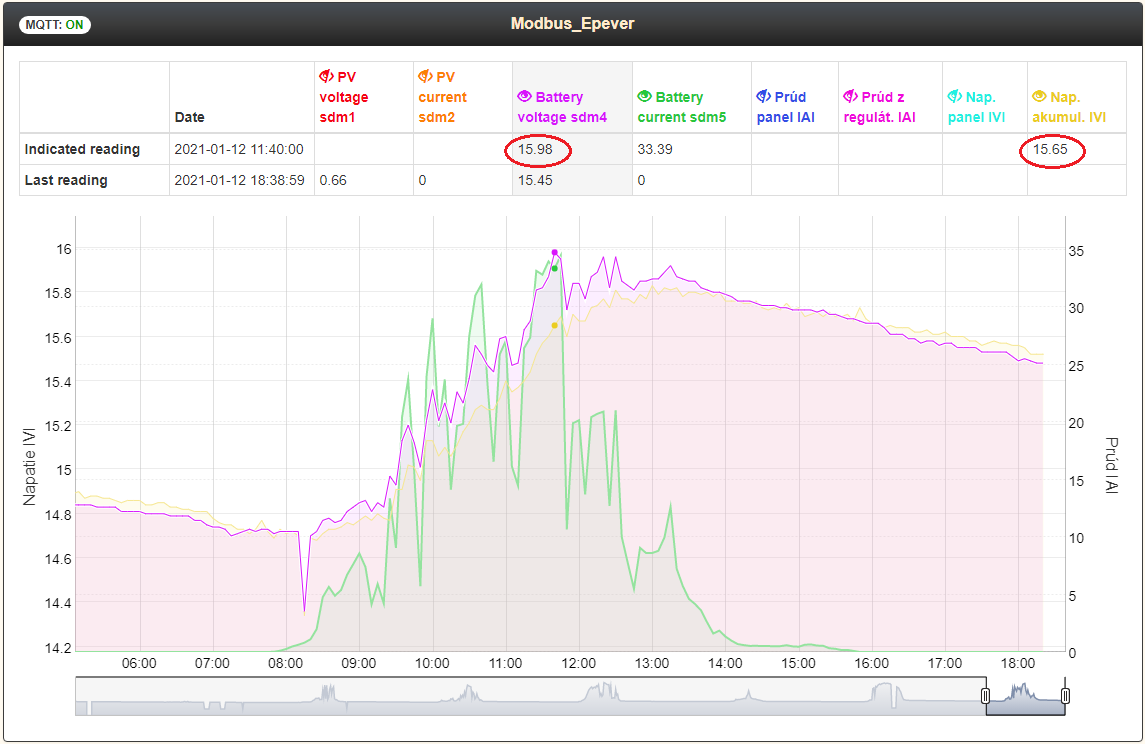 Dnes som porovnával moje meranie s meraním Epever a zistil som, že Epever meria trochu rozdielne ale pre tento účel to bude postačujúce. Moje meranie mám nakalibrované a to meria presne.