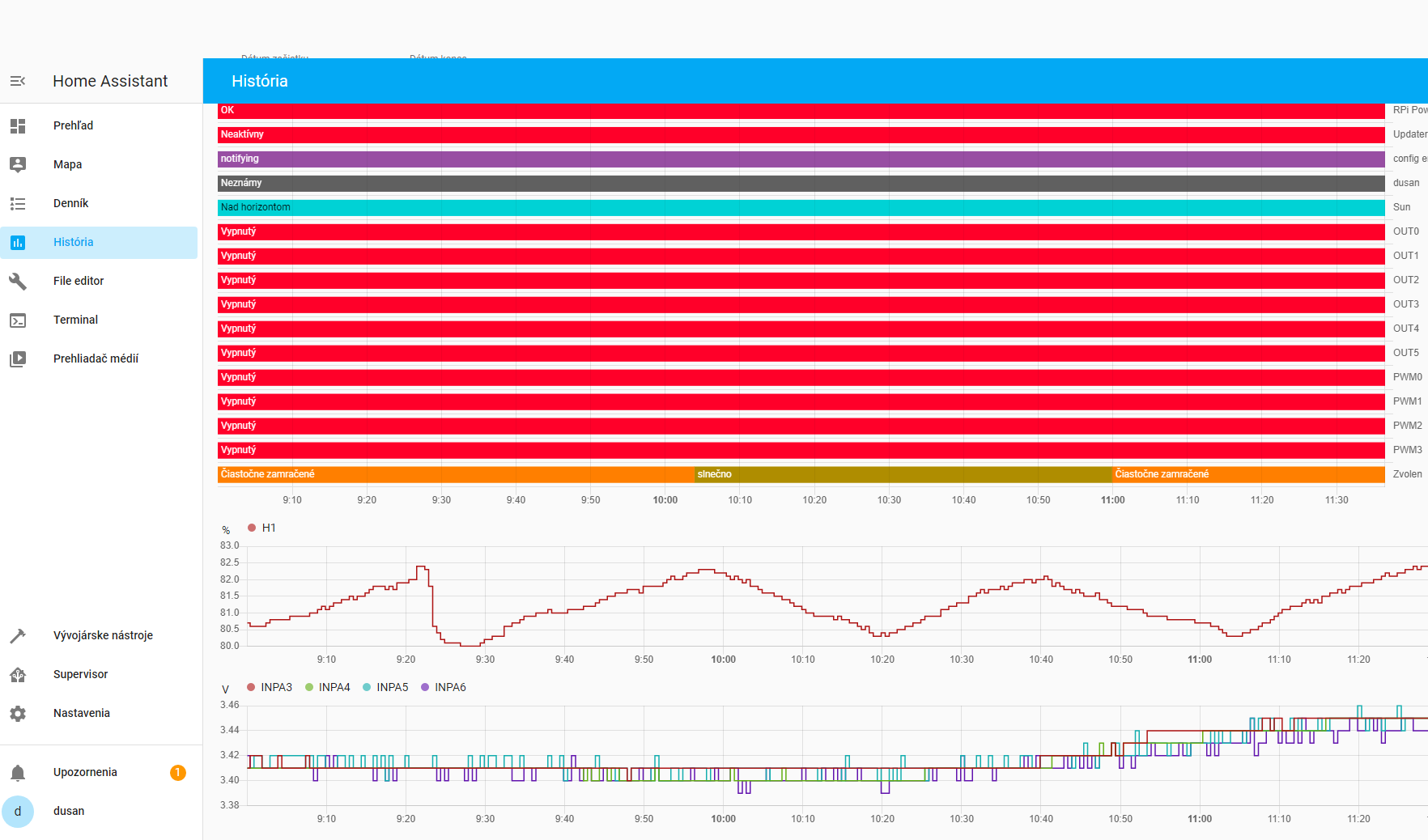 Takto to vypadá v Home Assistant: Home Assistant zatiaľ používať nebudem, všetko čo potrebujem pre monitoring a automatizáciu mojej malej FVE mám teraz v LK3, grafy na MQTT a ovládanie cez mobilnú aplikáciu.